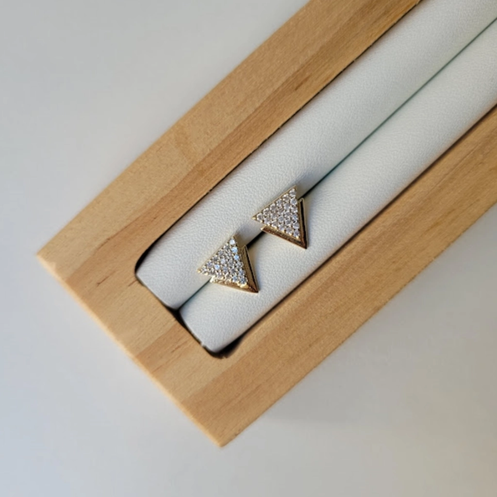 Brinco Triângulo Duplo Cristal – Banhado a Ouro 18K