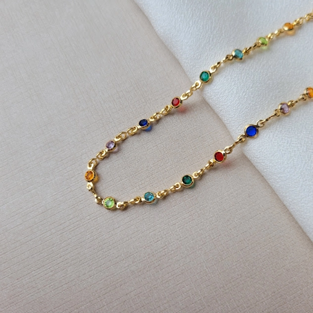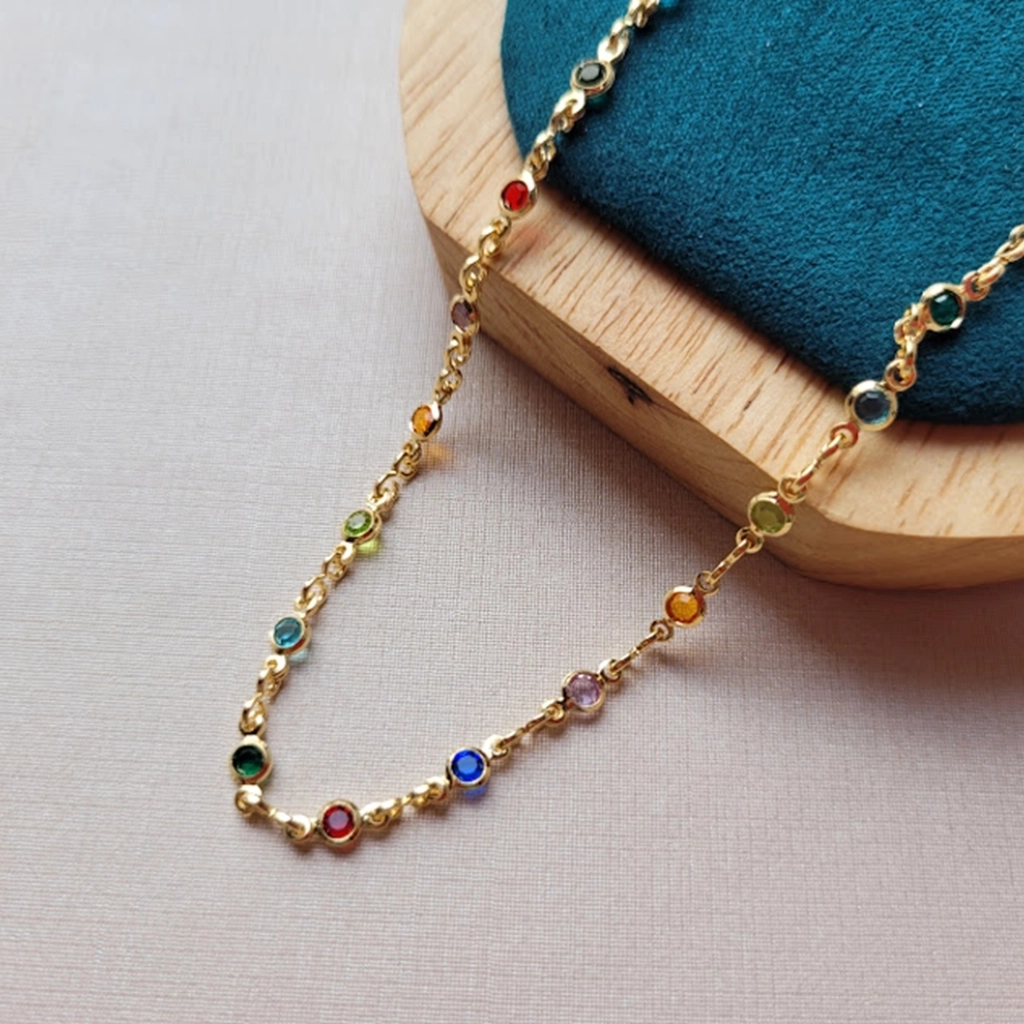 Choker com Zircônias Coloridas – Banhado a Ouro 18K