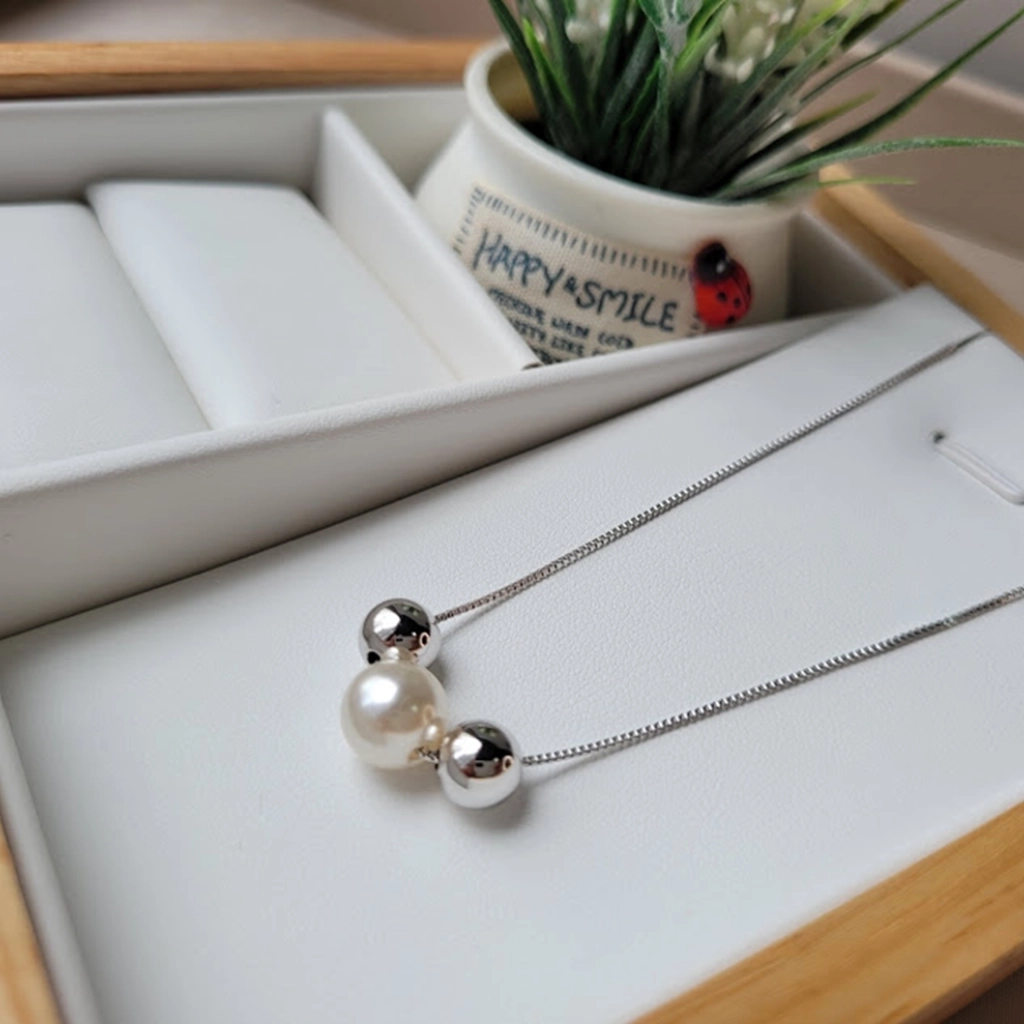 Colar Bolinha e Pérola – Ródio Branco