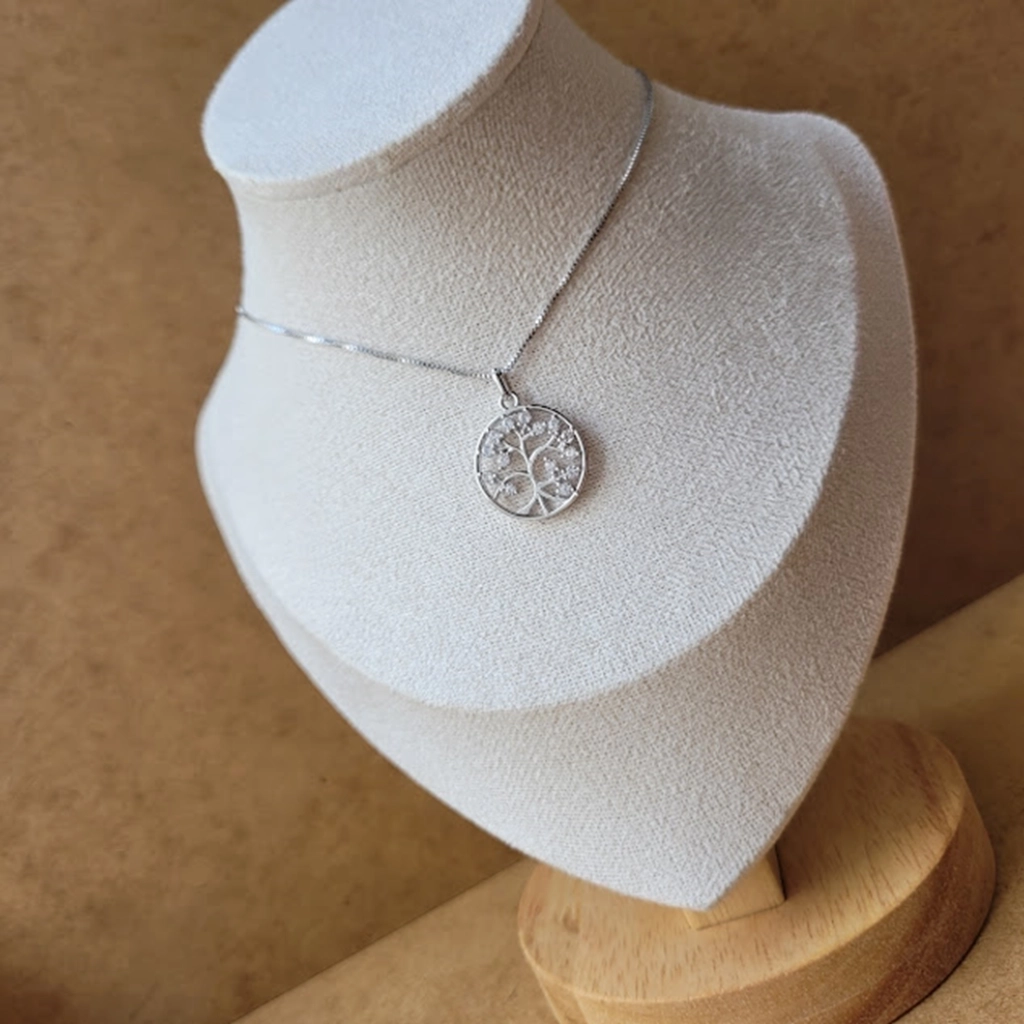 Colar Círculo Árvore da Vida Cristal – Ródio Branco
