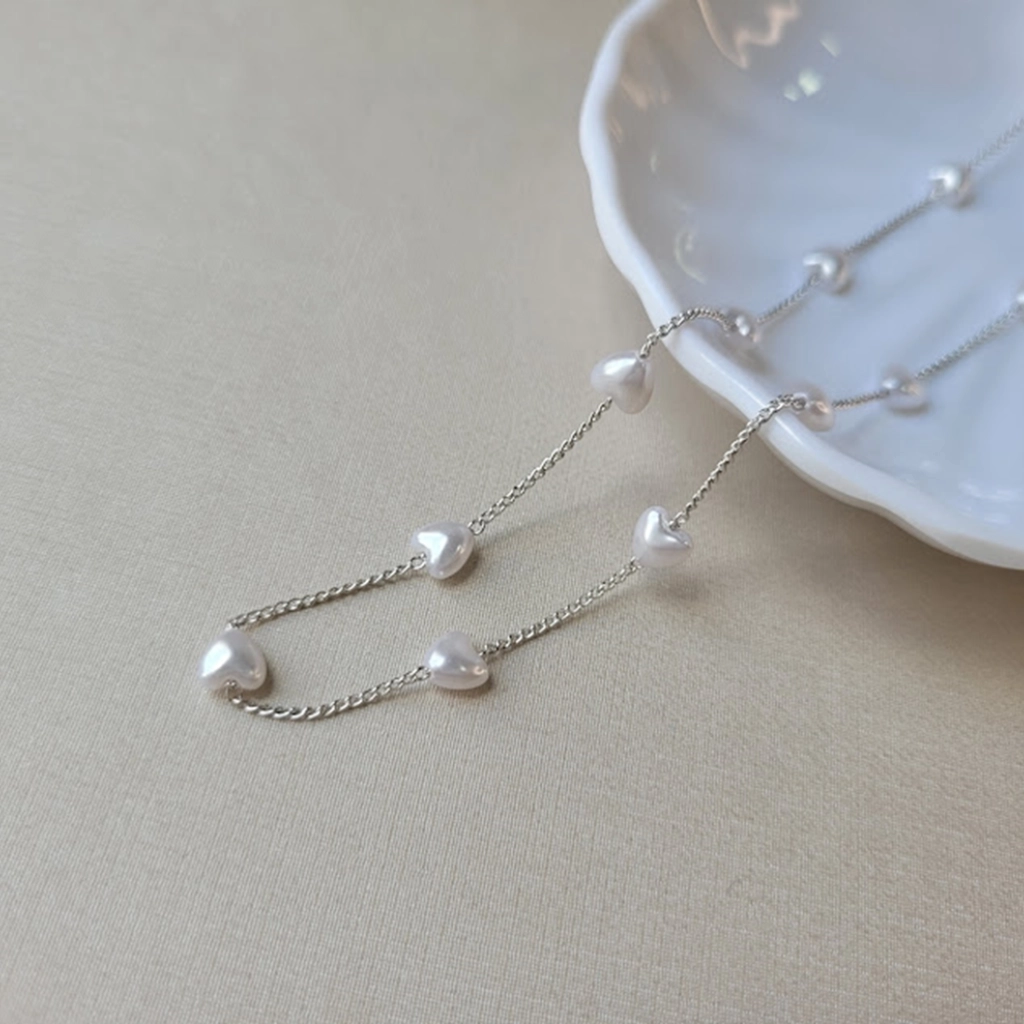 Colar com Corações em Pérola – Ródio Branco