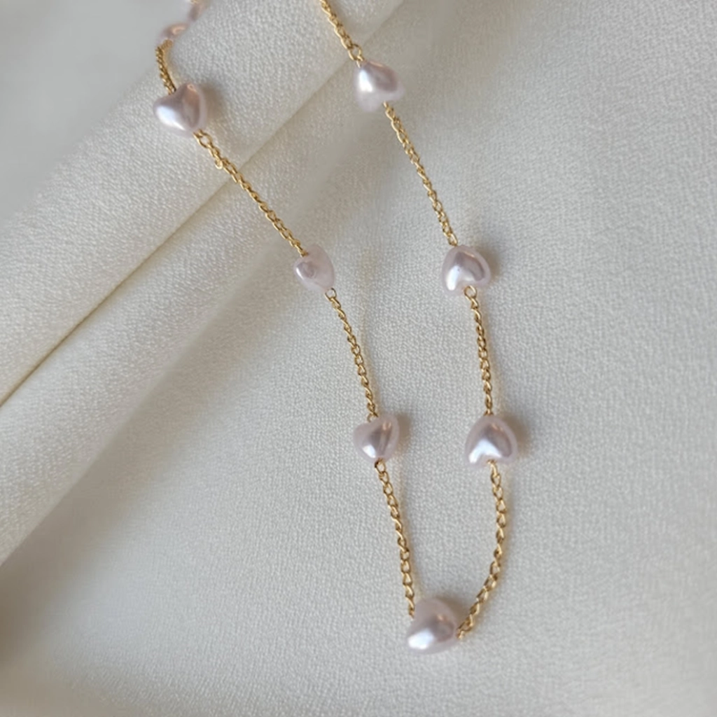 Colar com Corações em Pérola – Banhado a Ouro 18K