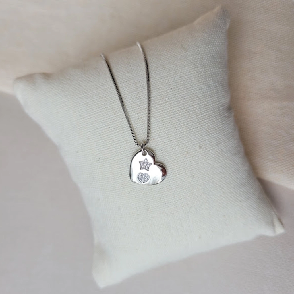 Colar Coração com Zircônias Cristais – Ródio Branco