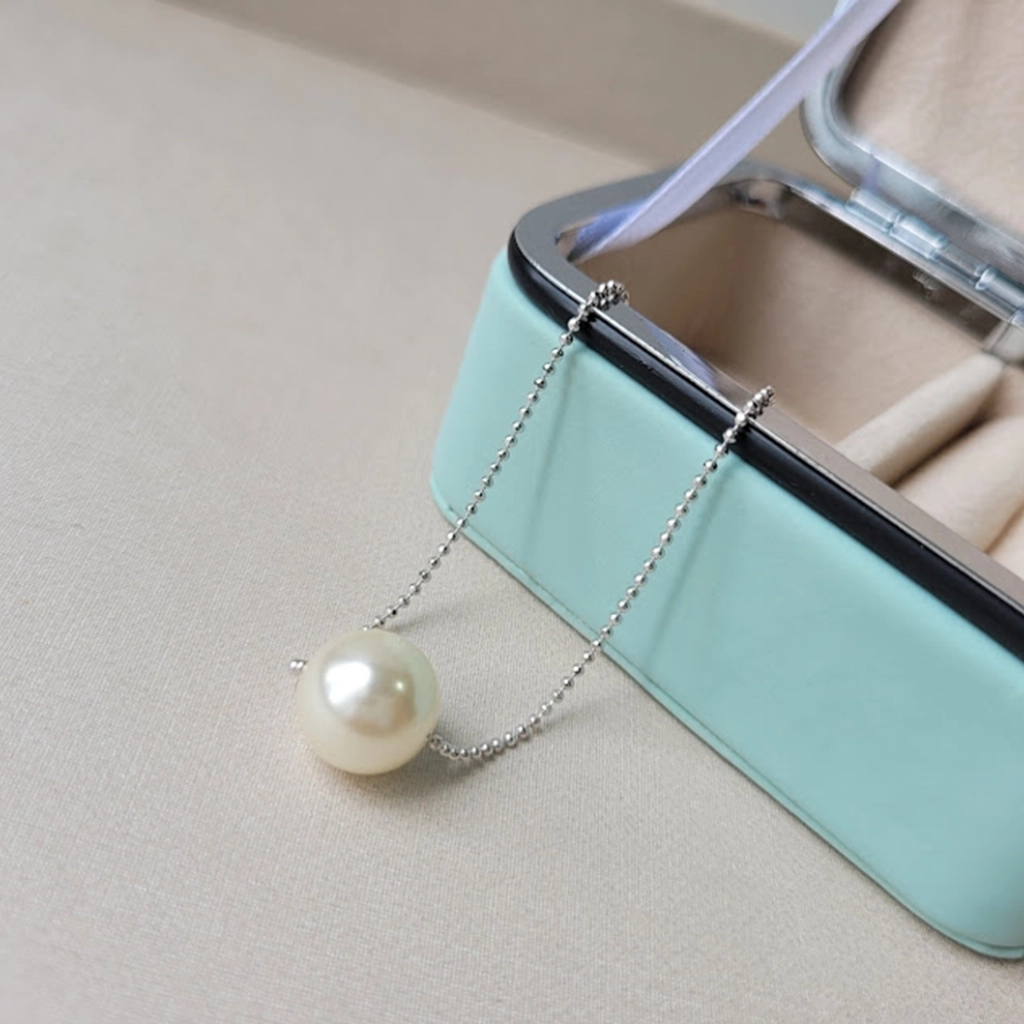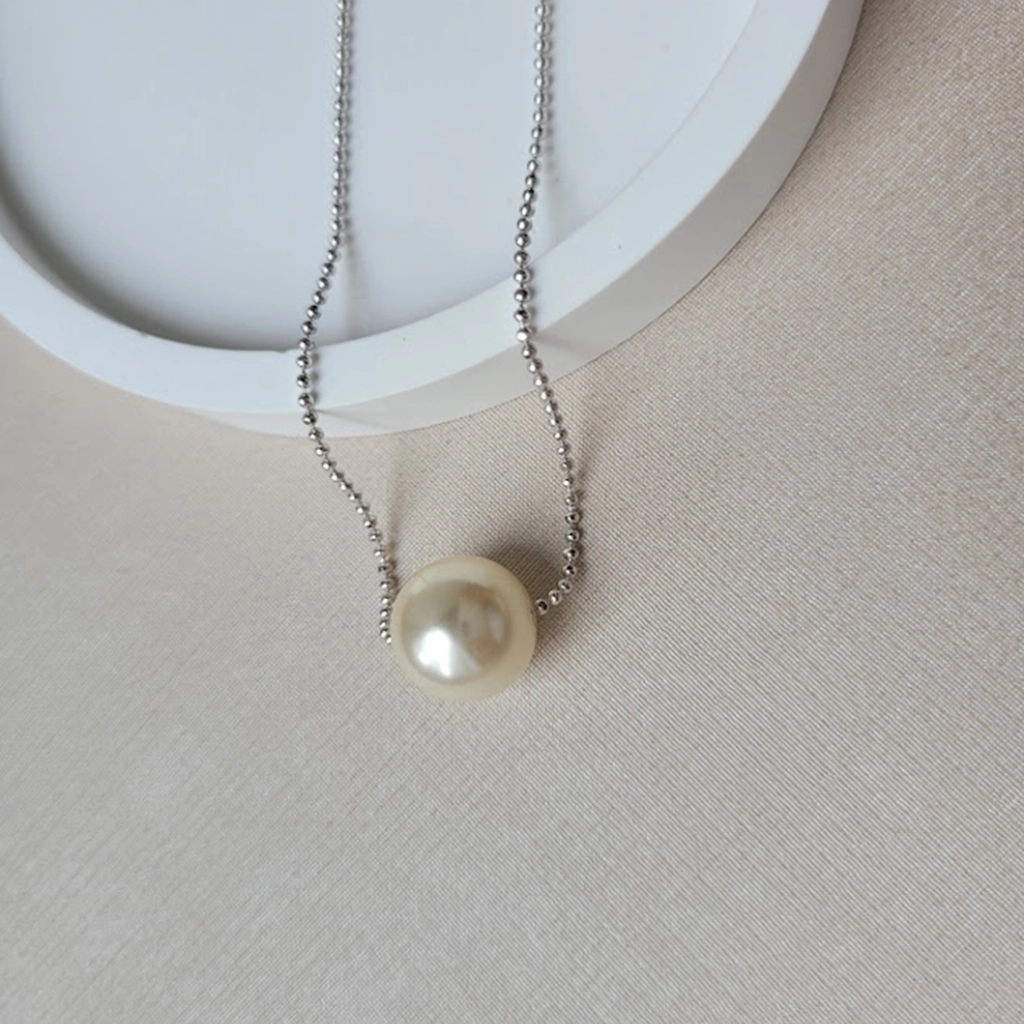 Colar Corrente Bolinha e Pérola – Ródio Branco