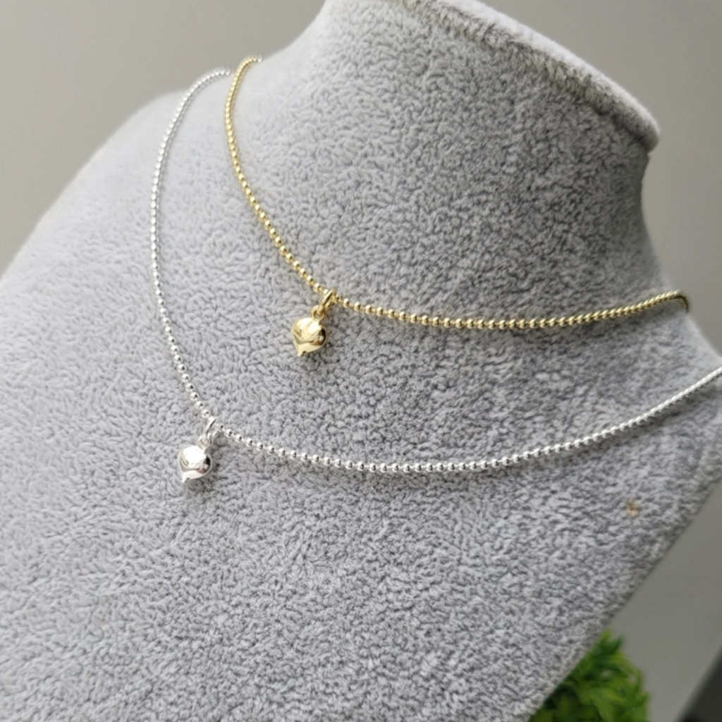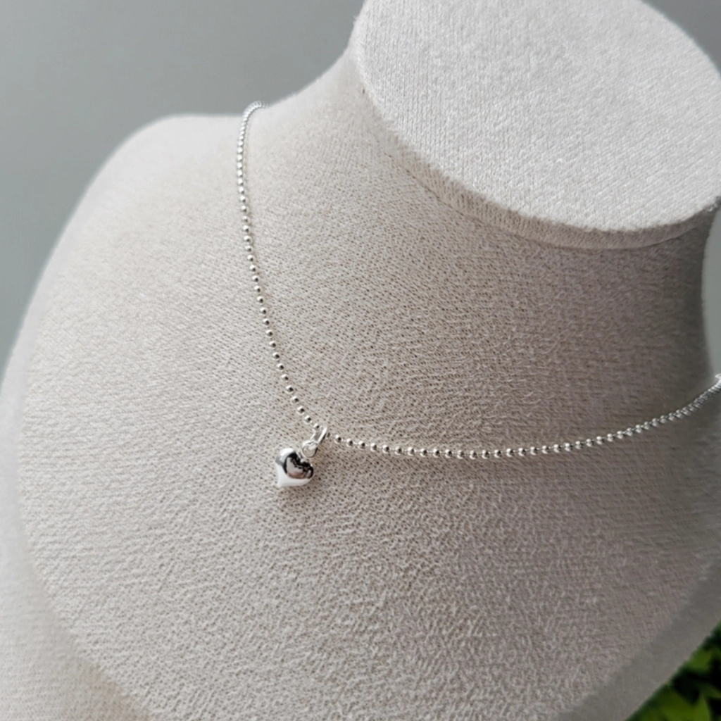 Colar de Bolinha com Coração – Folheado a Prata