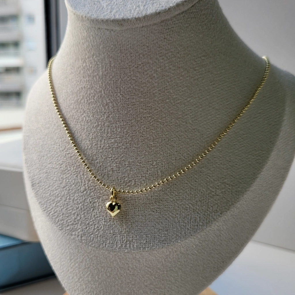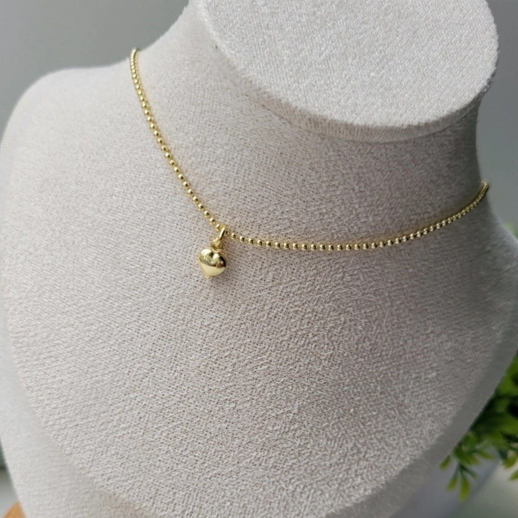 Colar de Bolinha com Coração – Banhado a Ouro 18K