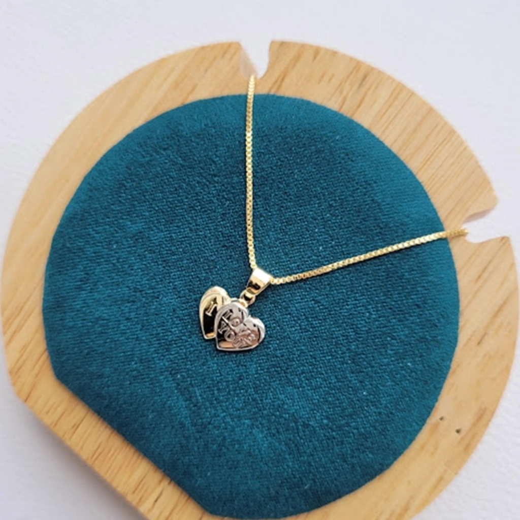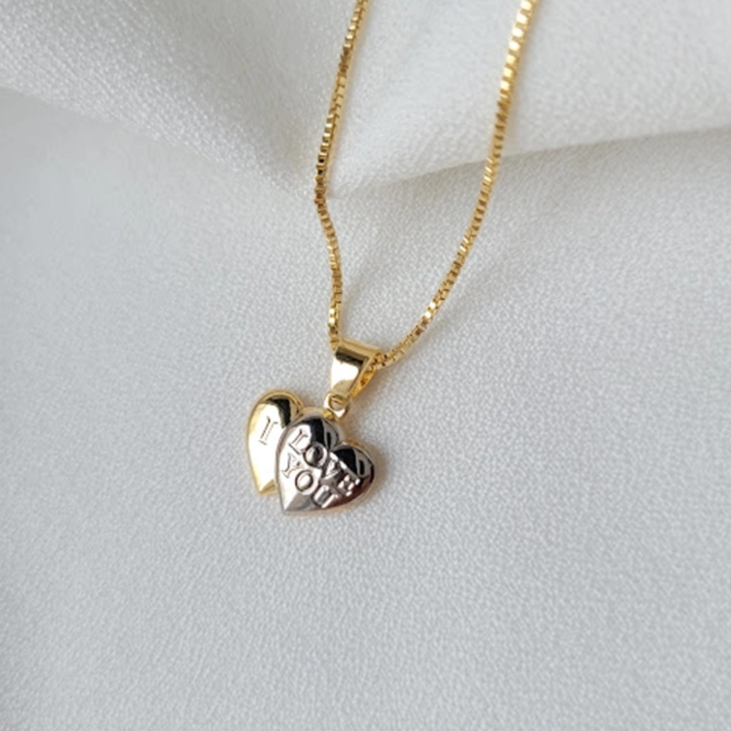 Colar Duplo Coração com Mensagem – Banhado a Ouro 18K