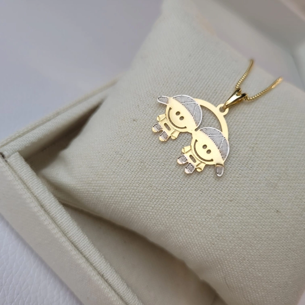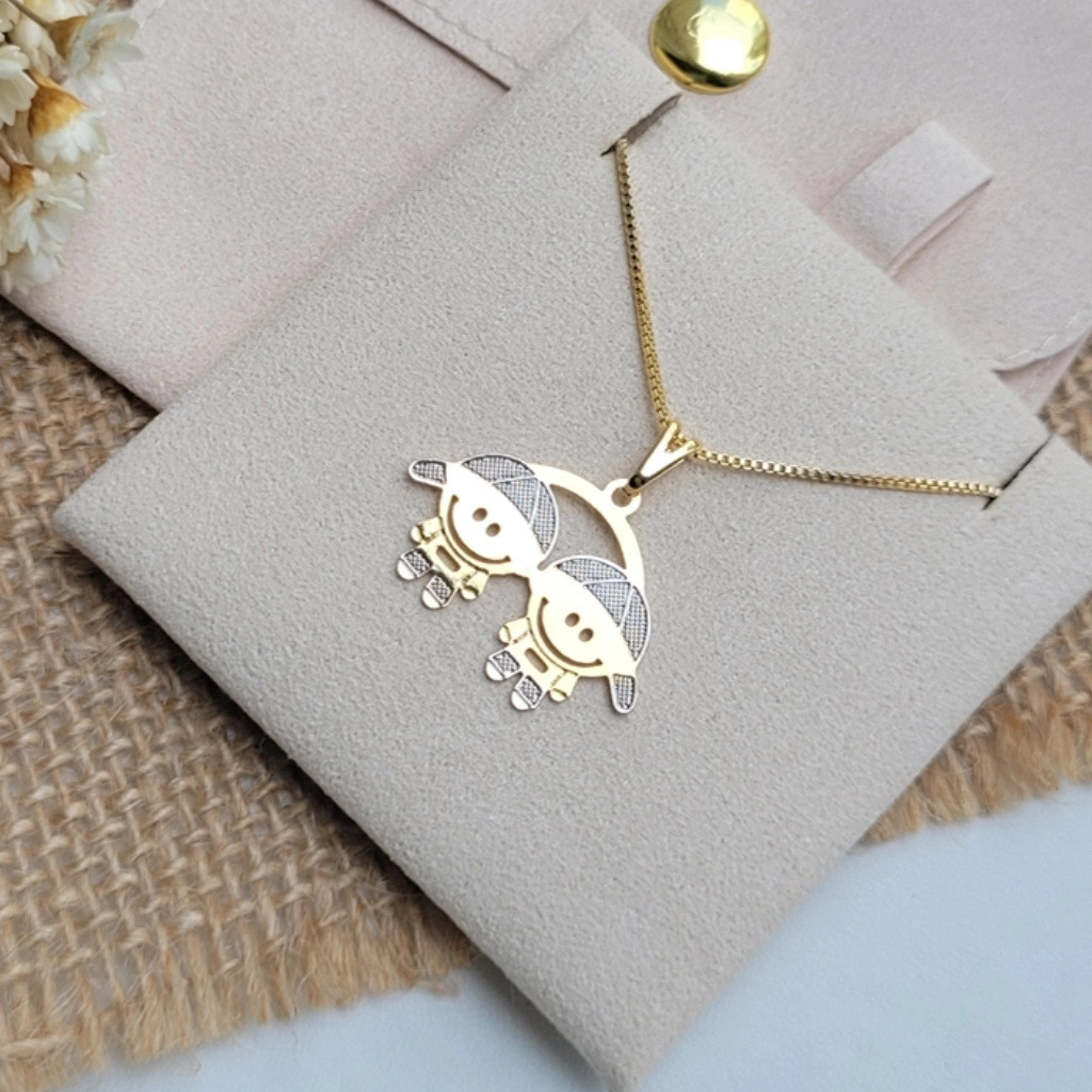 Colar Filhos (2 Meninos) com Caneta de Ródio – Banhado a Ouro 18K