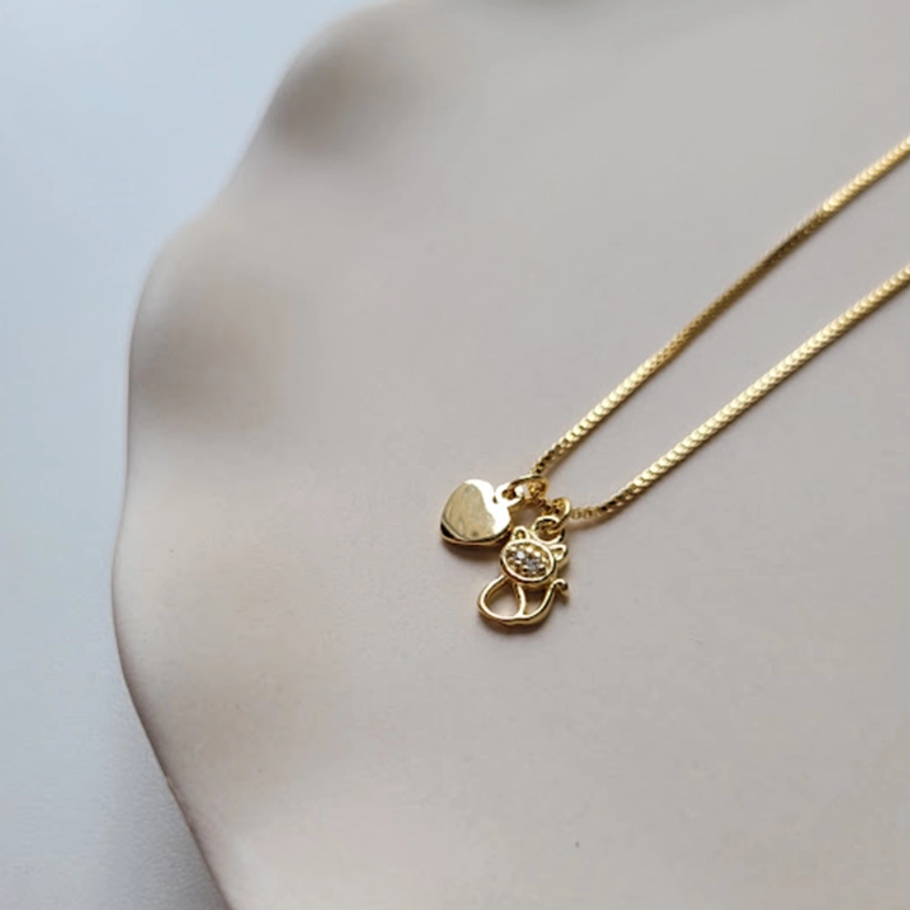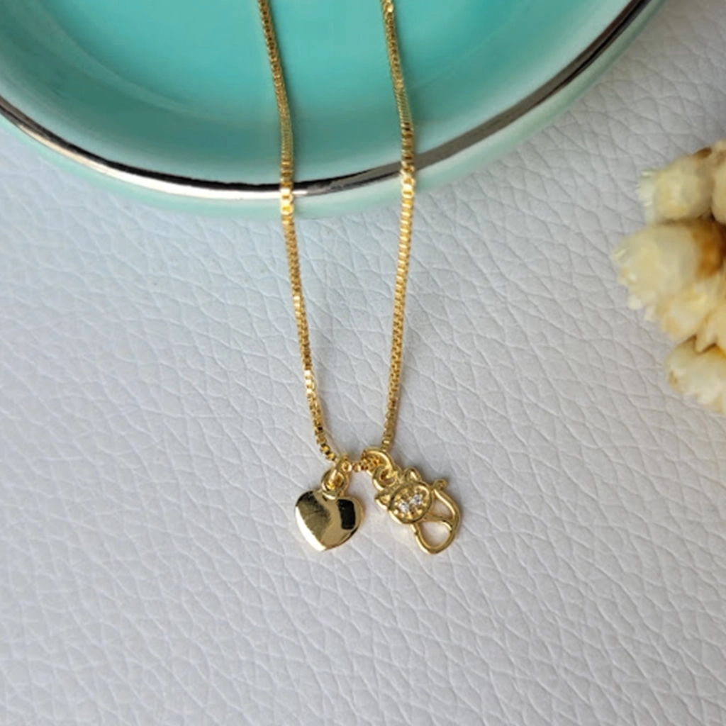 Colar Gatinho e Coração – Banhado a Ouro 18K