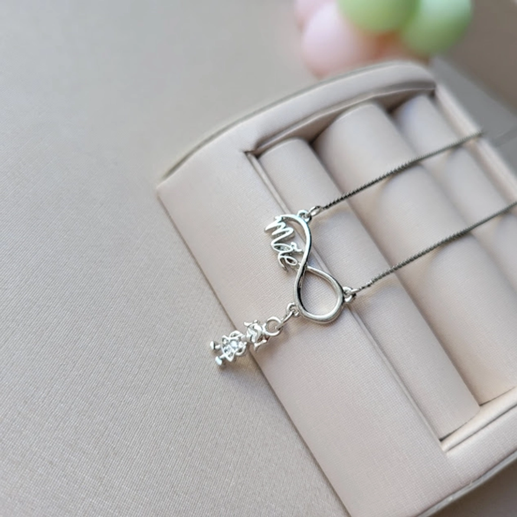 Colar Infinito Mãe com Pingente Filha Cristal – Ródio Branco