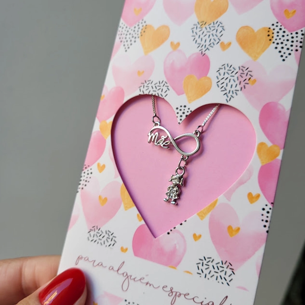 Colar Infinito Mãe com Pingente Filha Cristal