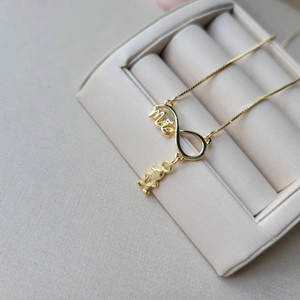 Colar Infinito Mãe com Pingente Filho Cristal – Banhado a Ouro 18K