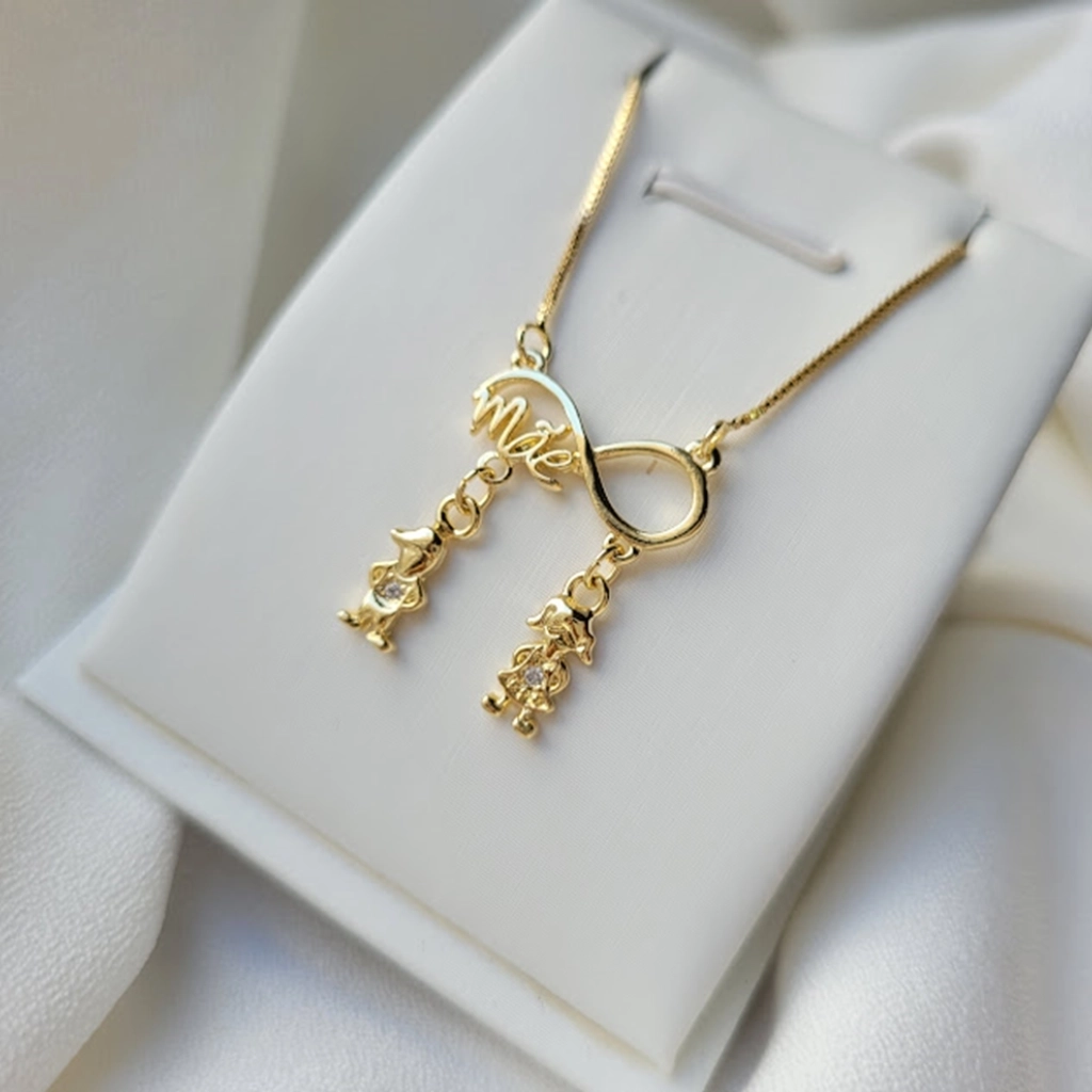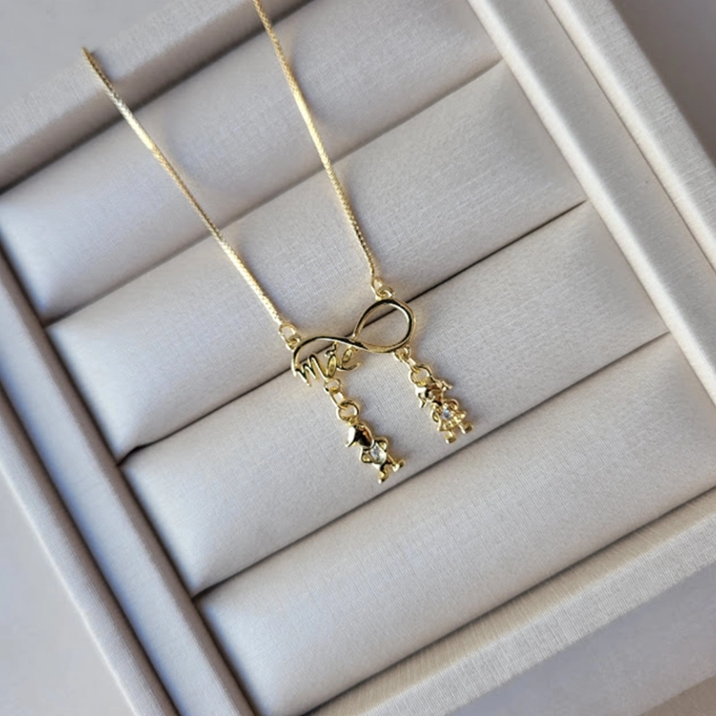 Colar Infinito Mãe com Pingente Filhos (Casal) Cristais – Banhado a Ouro 18K