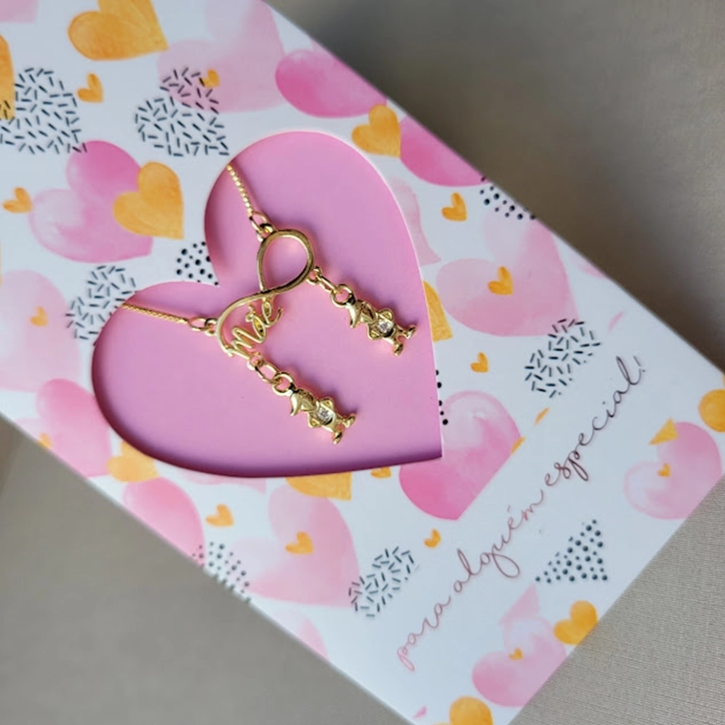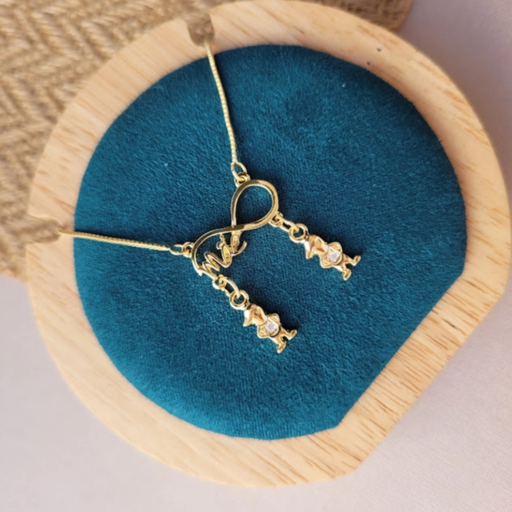 Colar Infinito Mãe com Pingente Filhos Cristais – Banhado a Ouro 18K