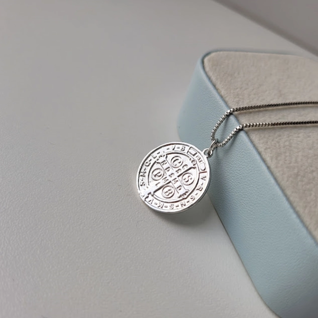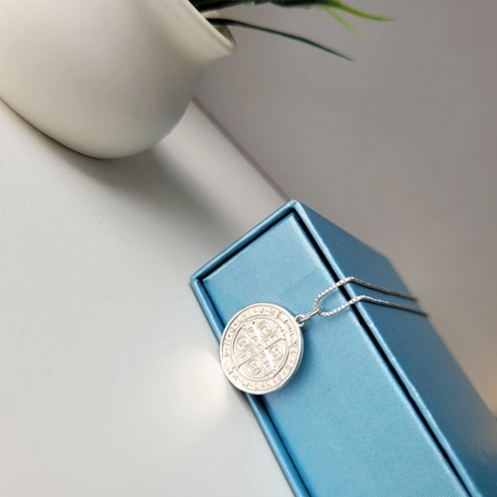 Colar Medalha São Bento – Ródio Branco