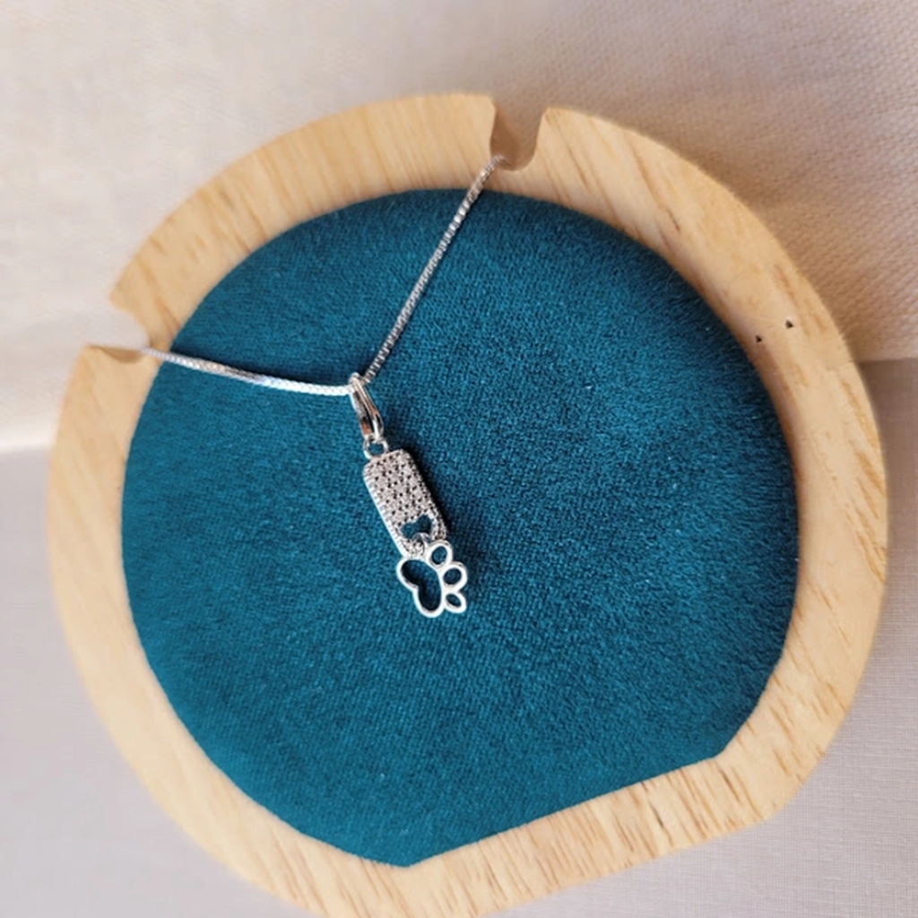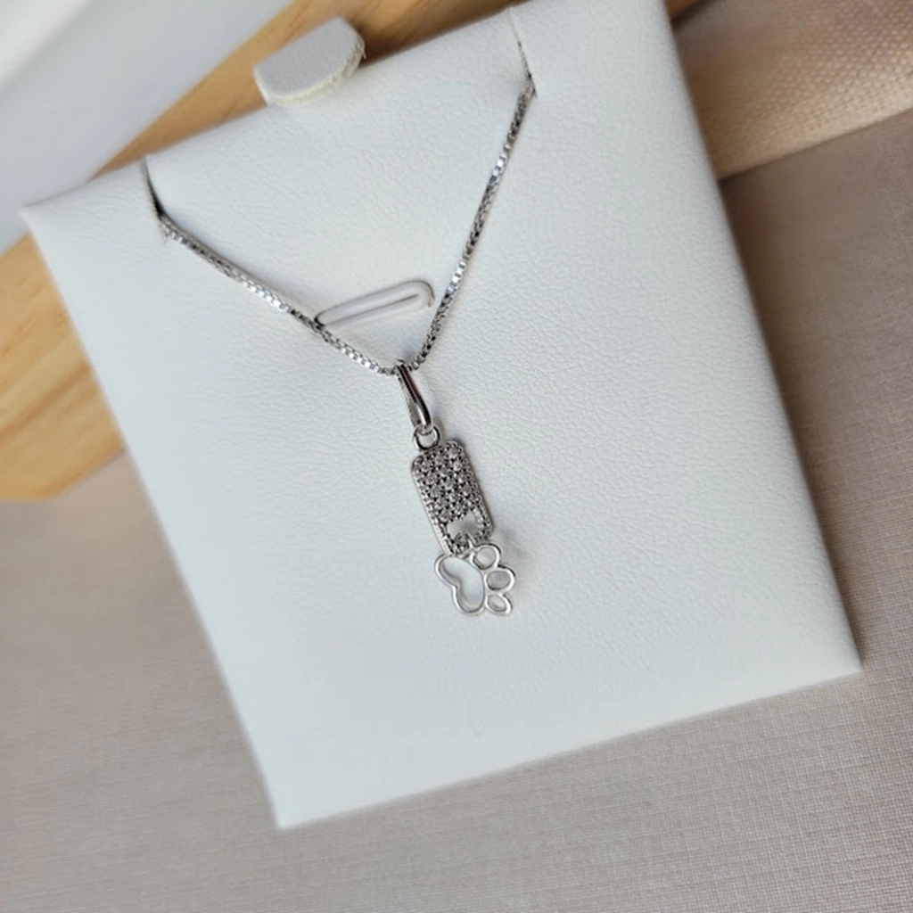 Colar Plaquinha Cristal e Patinha Vazada – Ródio Branco