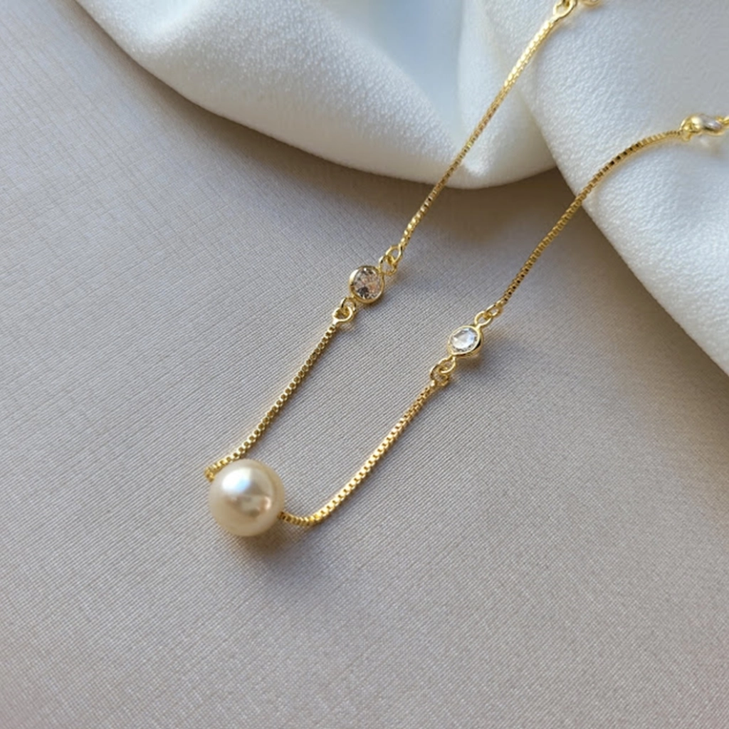 Colar Ponto de Luz e Pérola – Banhado a Ouro 18K