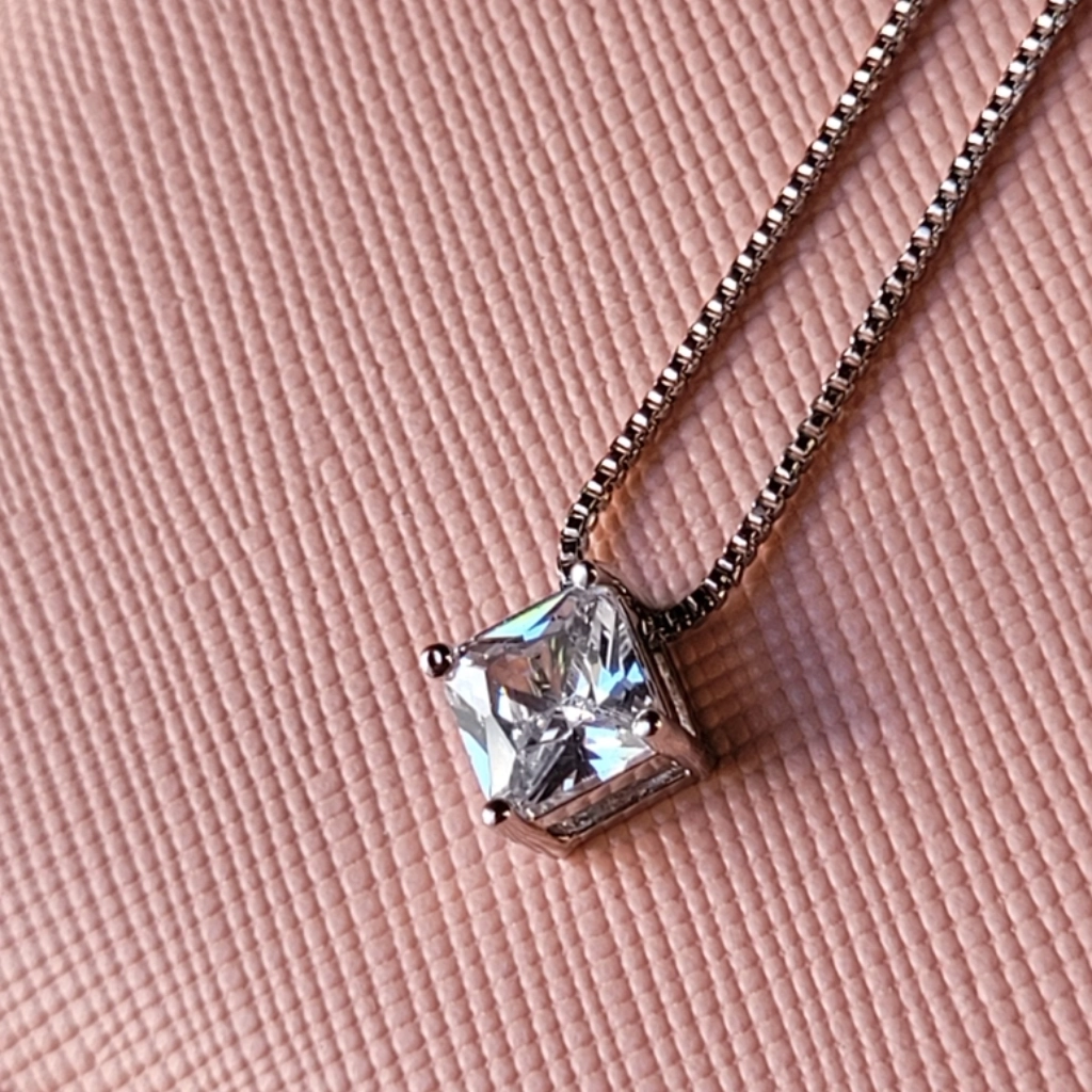 Colar Ponto de Luz Quadrado Cristal