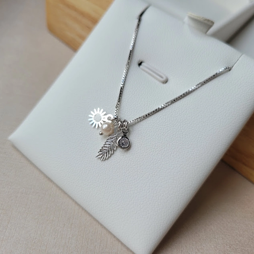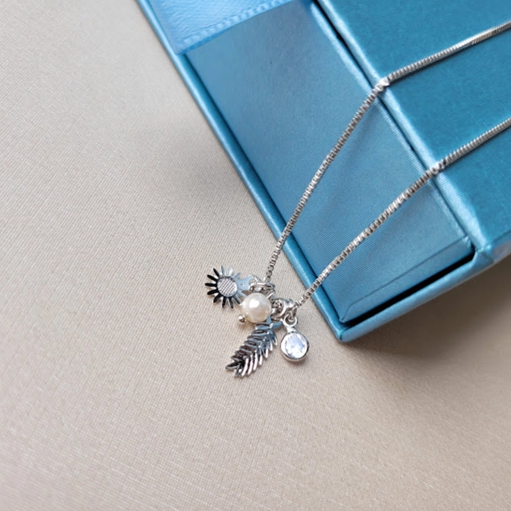 Colar Sol, Folha, Pérola e Ponto de Luz – Ródio Branco