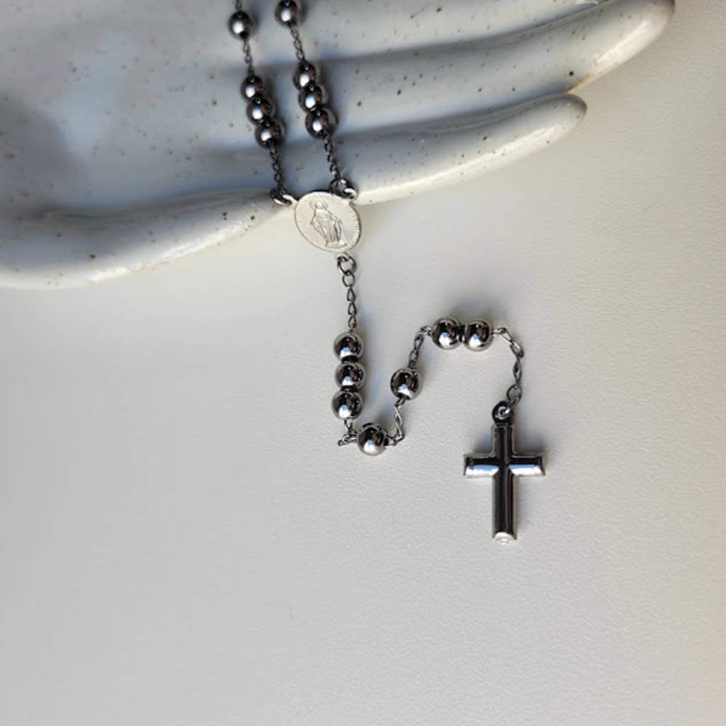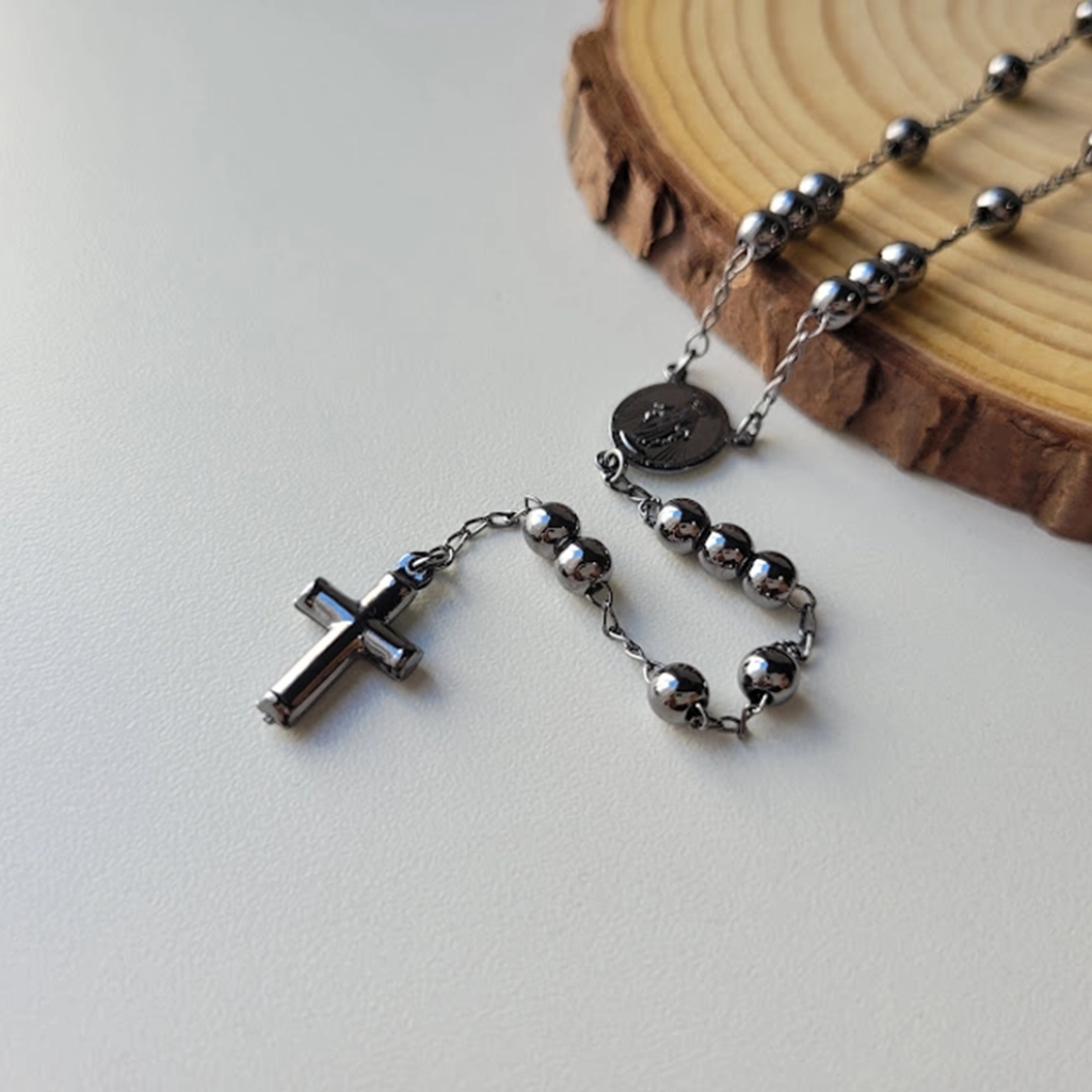 Colar Terço Nossa Senhora das Graças – Ródio Negro