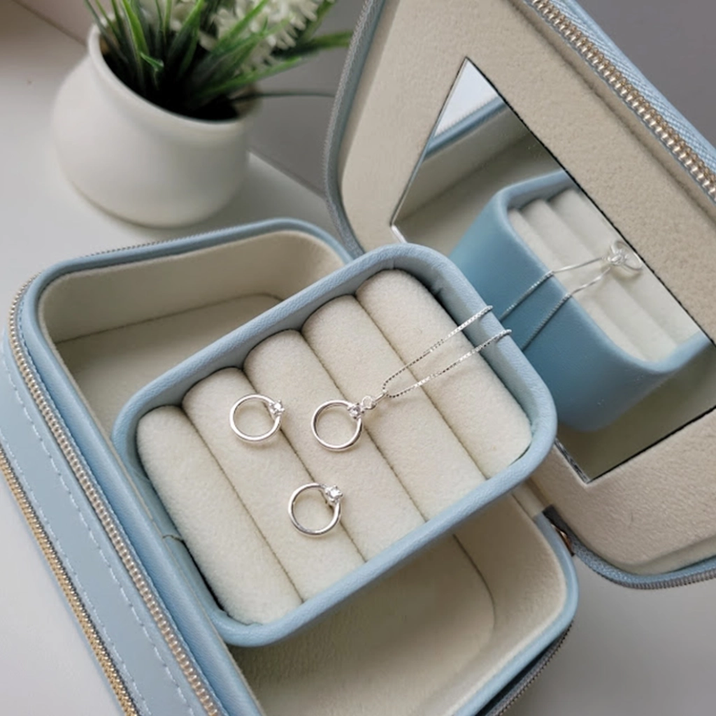 Conjunto Círculo com Ponto de Luz Cristal – Prata 925