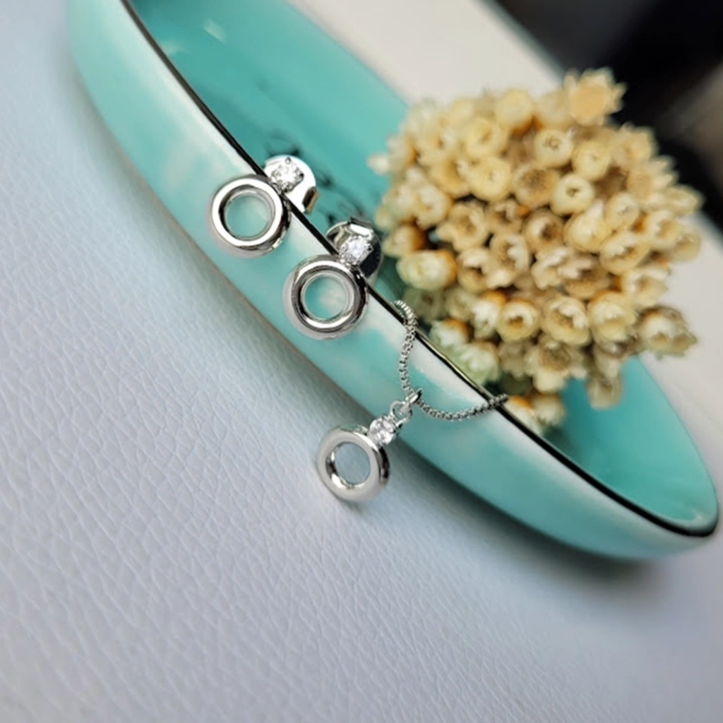 Conjunto Círculo com Ponto de Luz Cristal – Ródio Branco