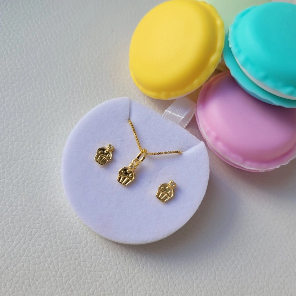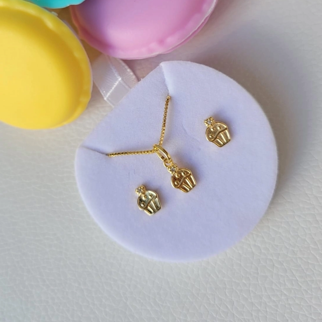 Conjunto Infantil Cupcake Cristal – Banhado a Ouro 18K