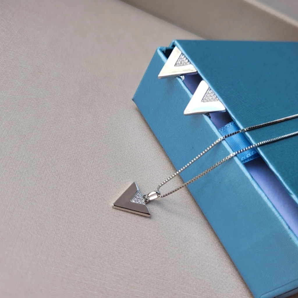 Conjunto Triângulo com Micro Zircônias Cravejadas – Ródio Branco