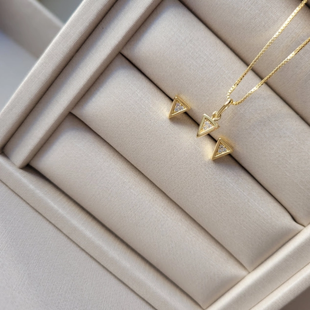 Conjunto Triângulo Cristal – Banhado a Ouro 18K