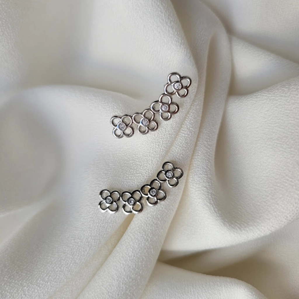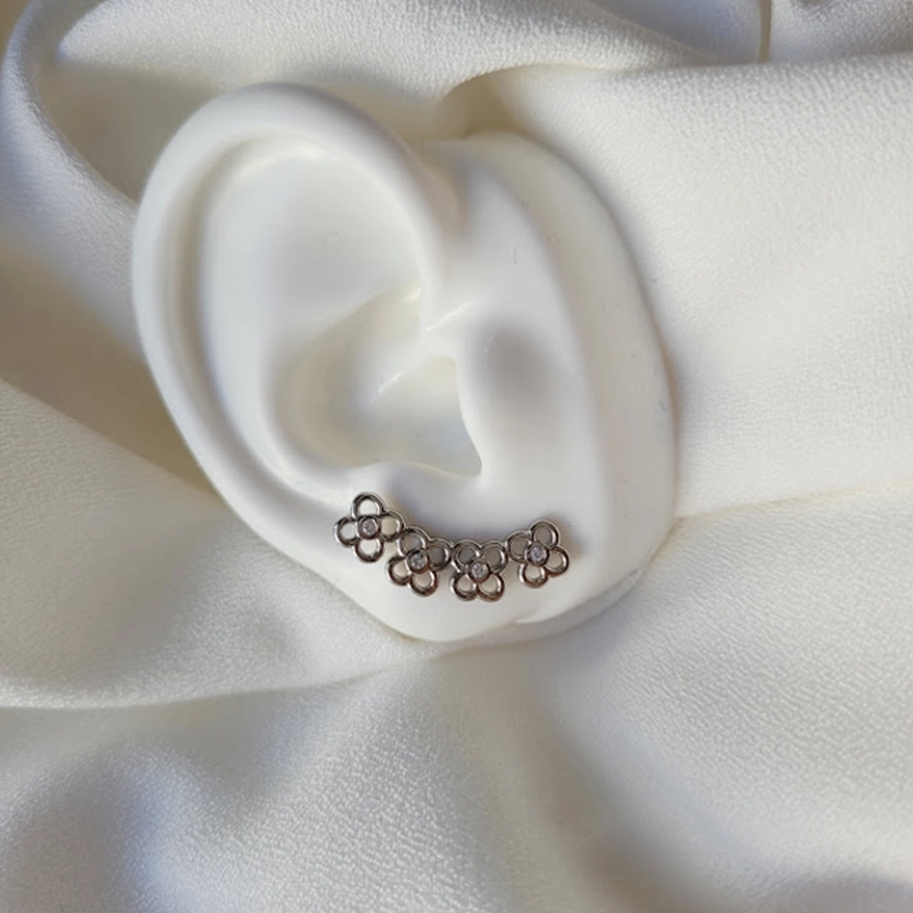 Ear Cuff Flores com Micro Zircônia Cristal – Ródio Branco