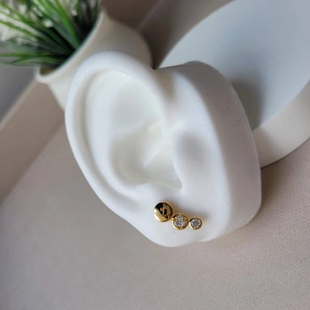 Ear Cuff Trio de Círculos Cristais – Banhado a Ouro 18K