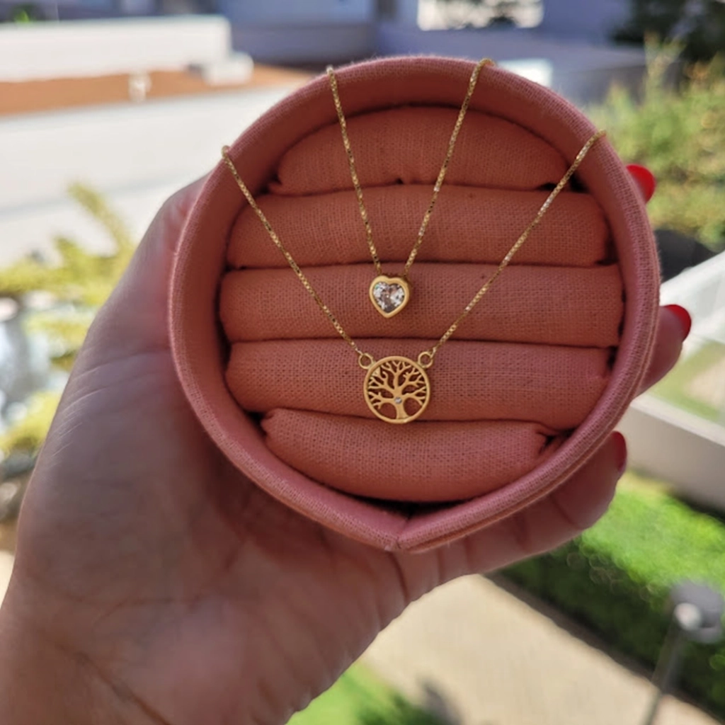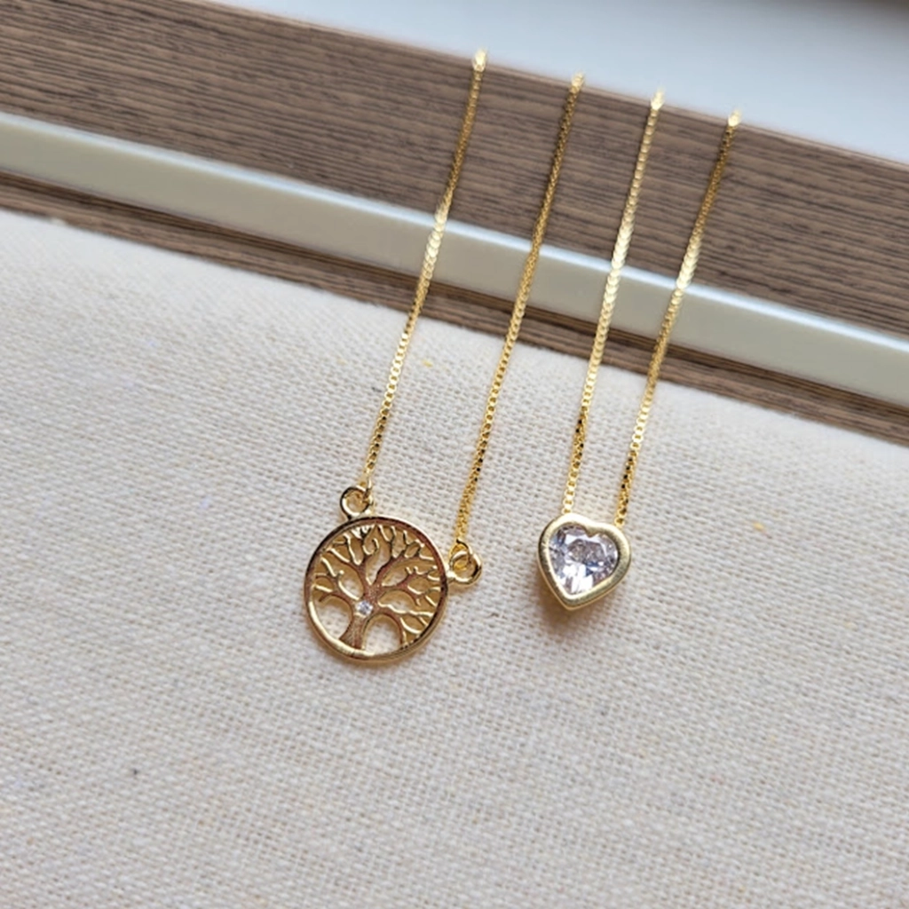 Escapulário Árvore da Vida e Coração Cristal – Banhado a Ouro 18K