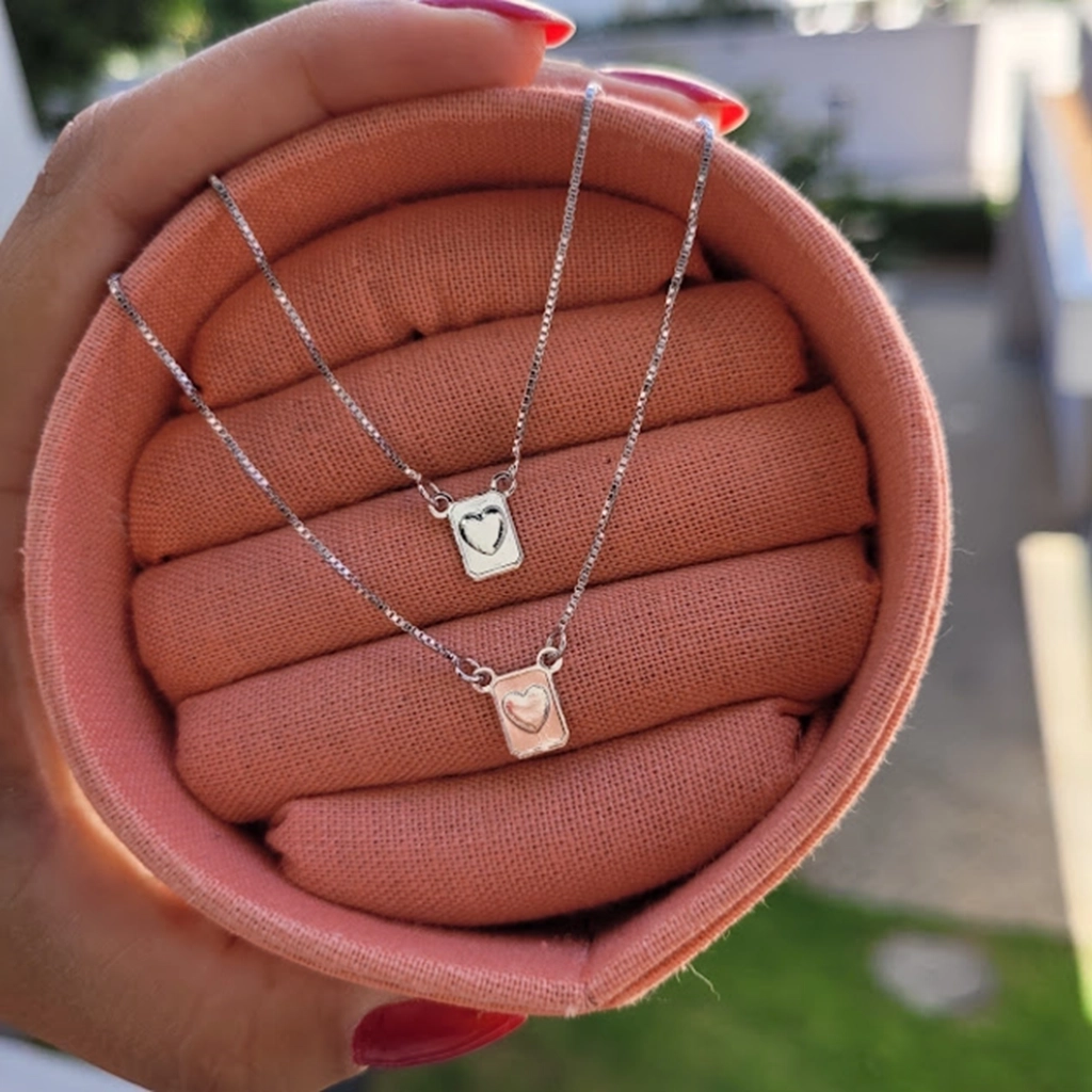 Escapulário Plaquinha Coração – Ródio Branco