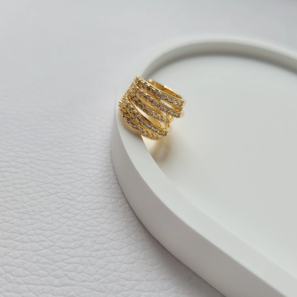 Piercing 5 Fios Cravejados Cristal – Banhado a Ouro 18K