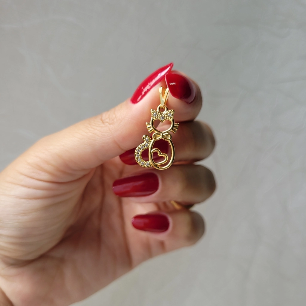 Pingente Gato Gravata – Banhado a Ouro 18K | StylusDay
