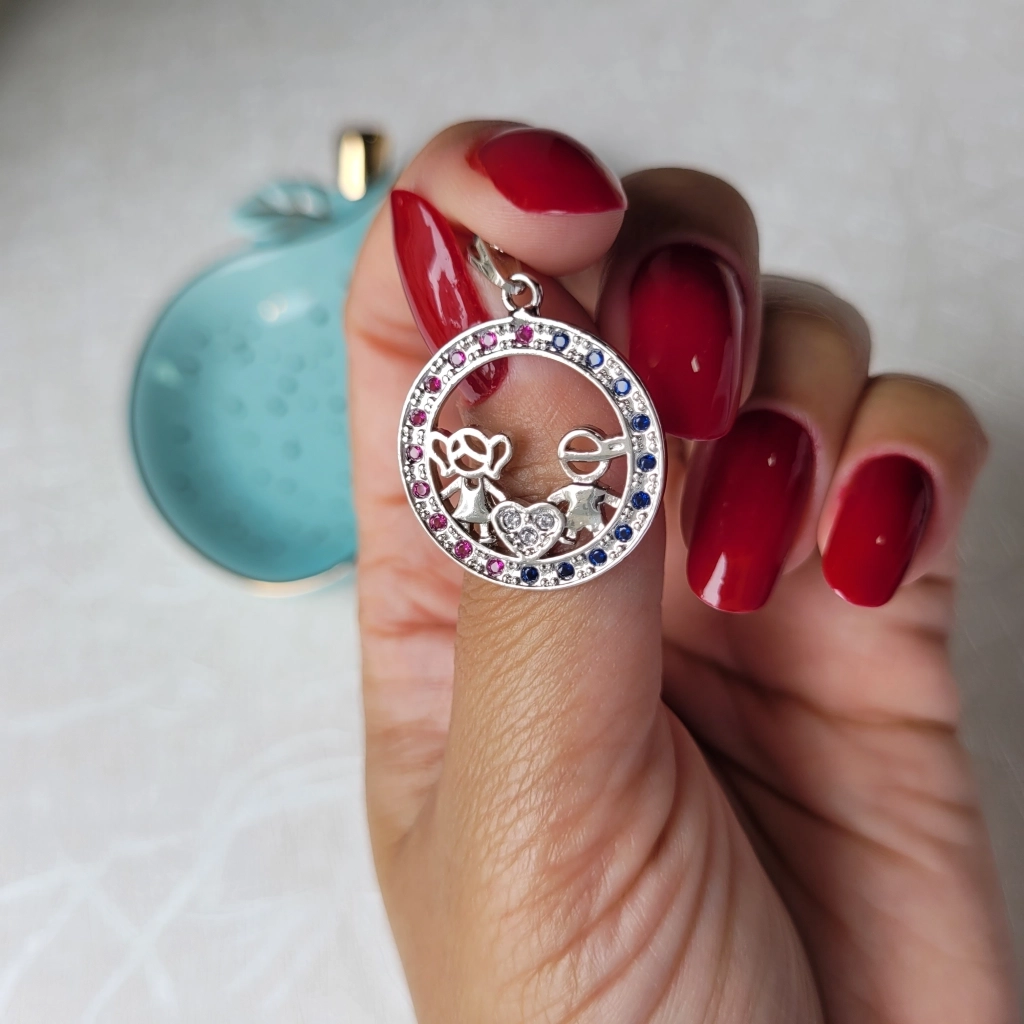 Pingente Mandala Filhos (Casal) Colorida – Ródio Branco | StylusDay
