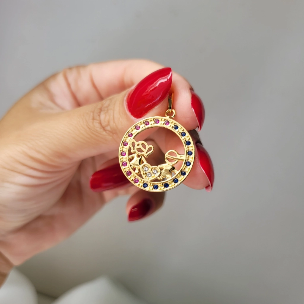 Pingente Mandala Filhos (Casal) Colorida – Banhado a Ouro 18K