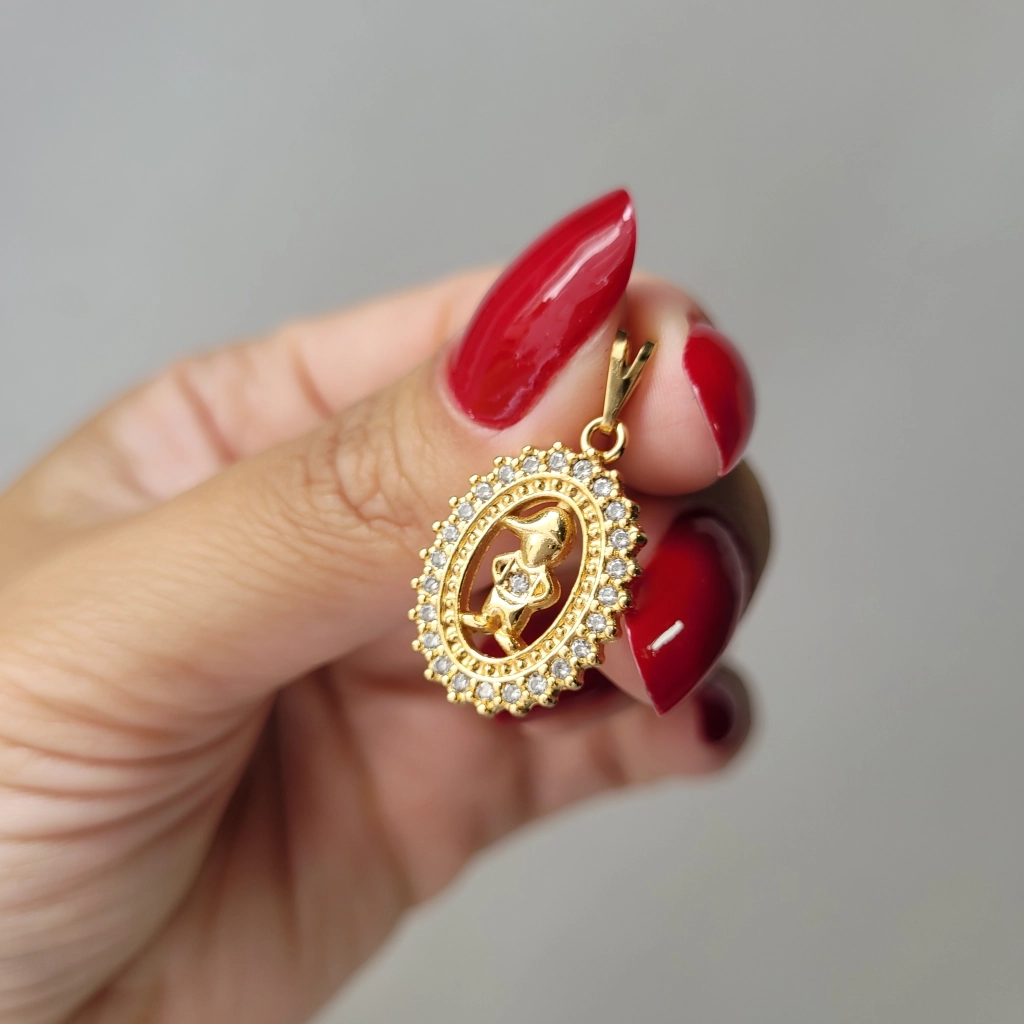 Pingente Mandala Oval Menino – Banhado a Ouro 18K