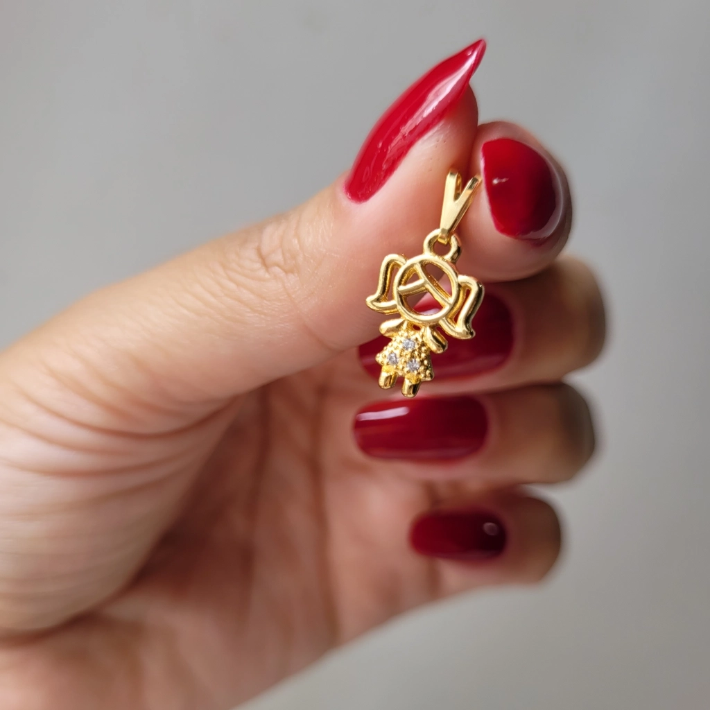 Pingente Menina com Micro Zircônias Cristais – Banhado a Ouro 18K