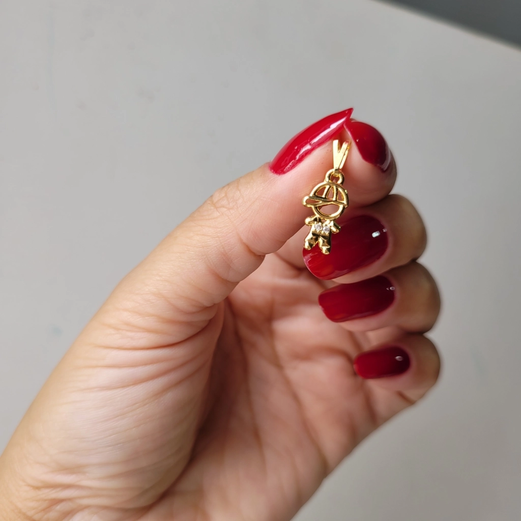 Pingente Menino com Micro Zircônias Cristais – Banhado a Ouro 18K