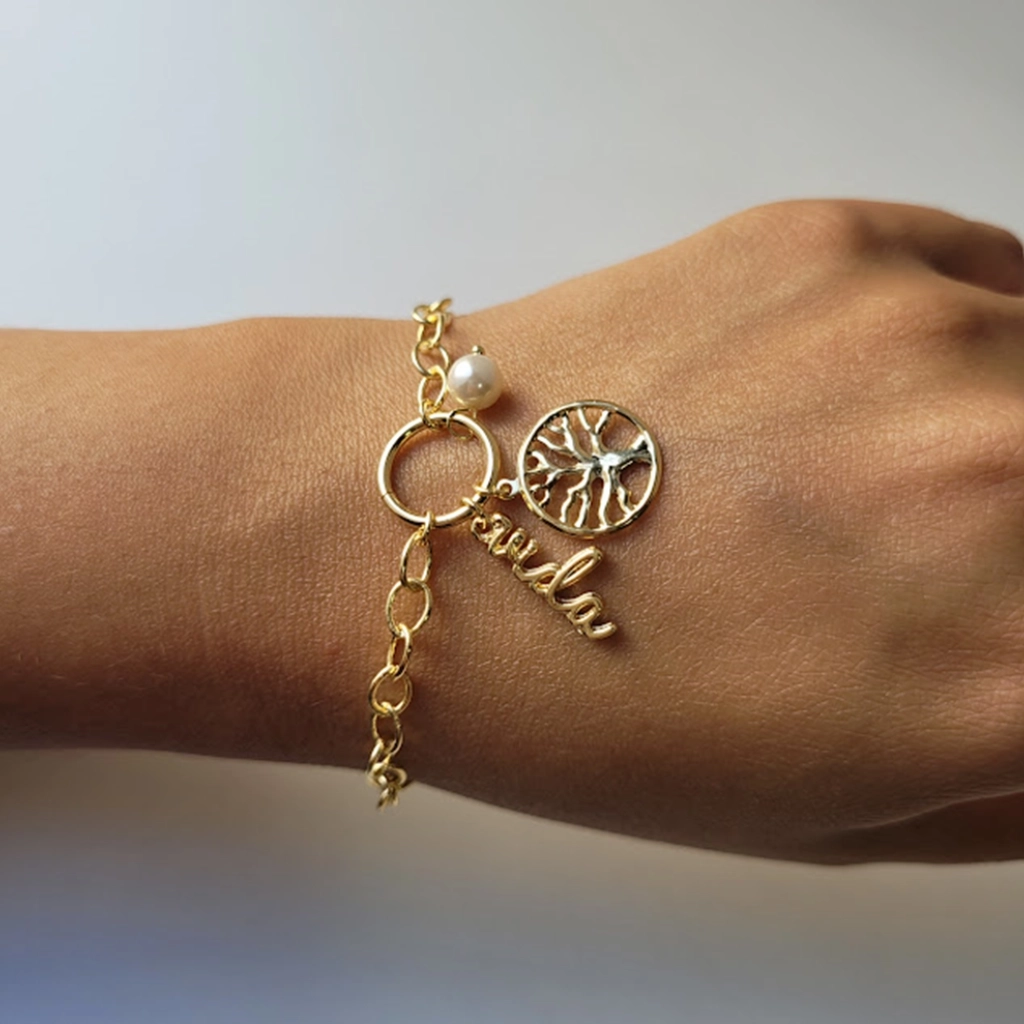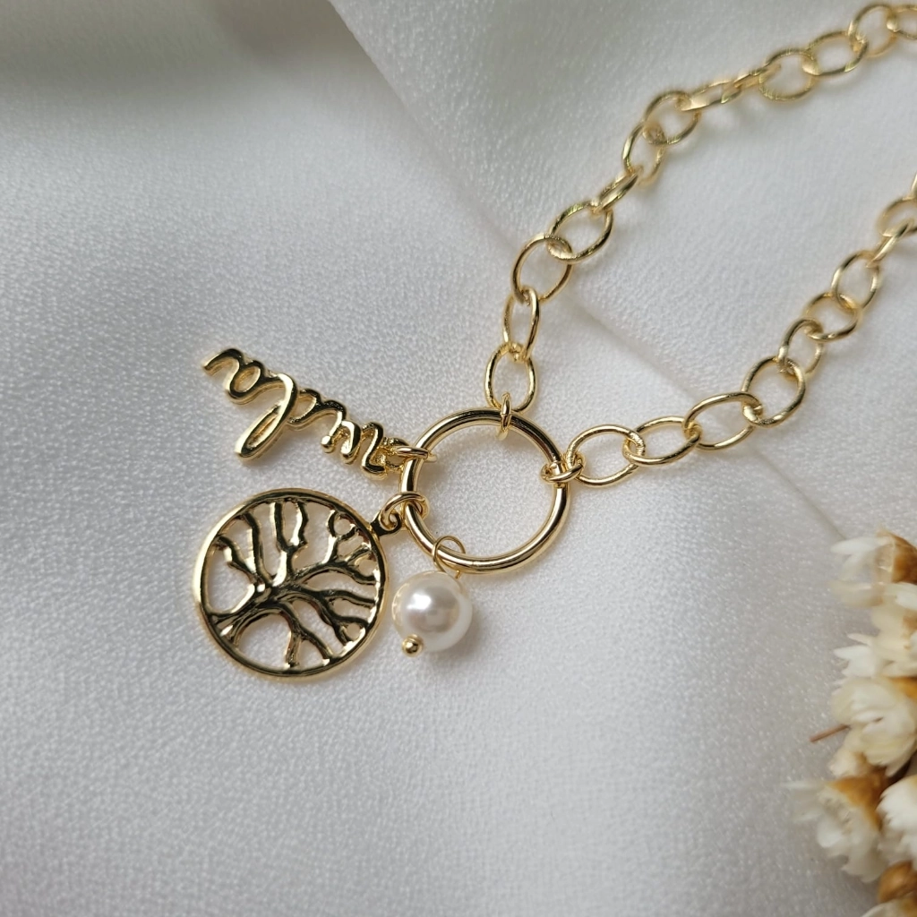 Pulseira Árvore da Vida Pérola – Banhado a Ouro 18K