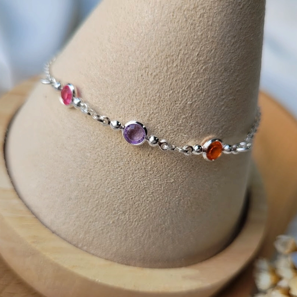 Pulseira Círculo Colorida – Folheado a Prata