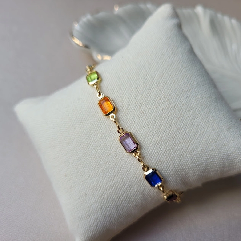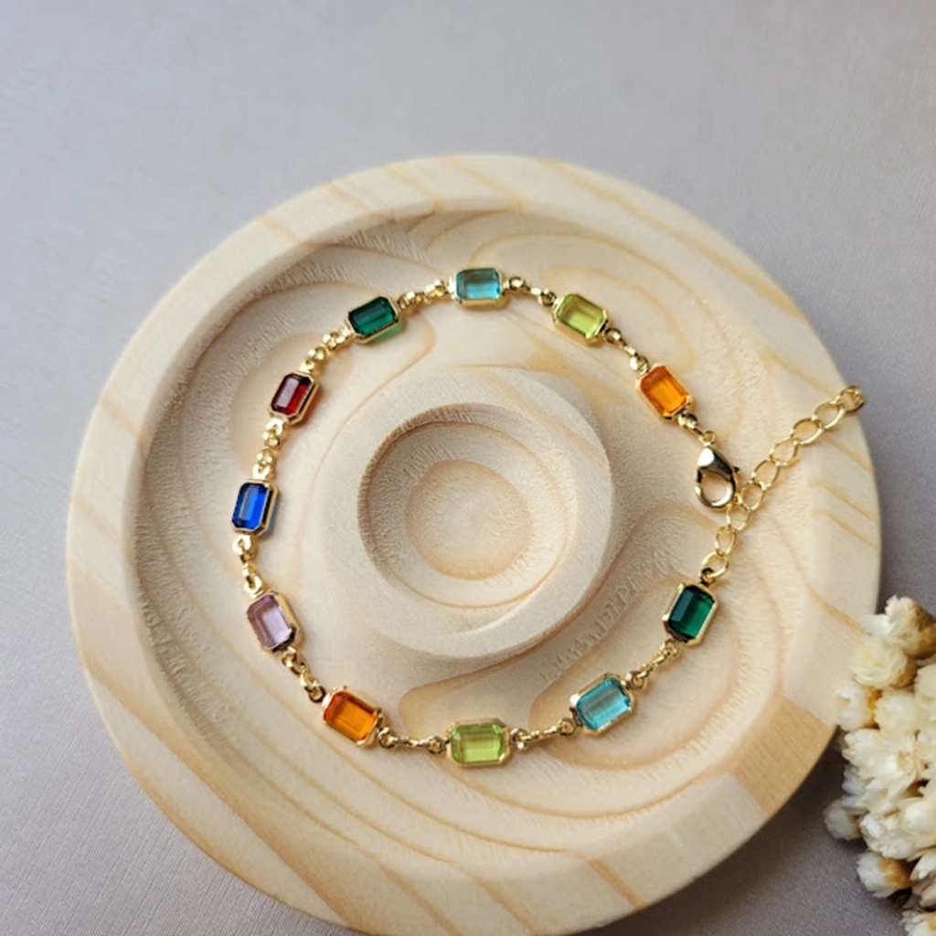 Pulseira com Retângulos Coloridos – Banhado a Ouro 18K