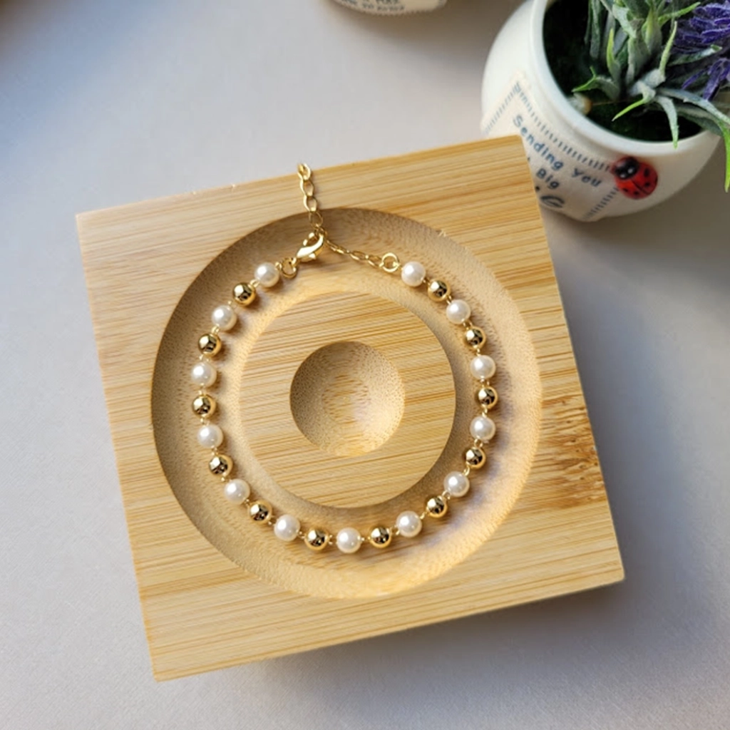 Pulseira Corrente Bolinhas e Pérolas – Banhado a Ouro 18K
