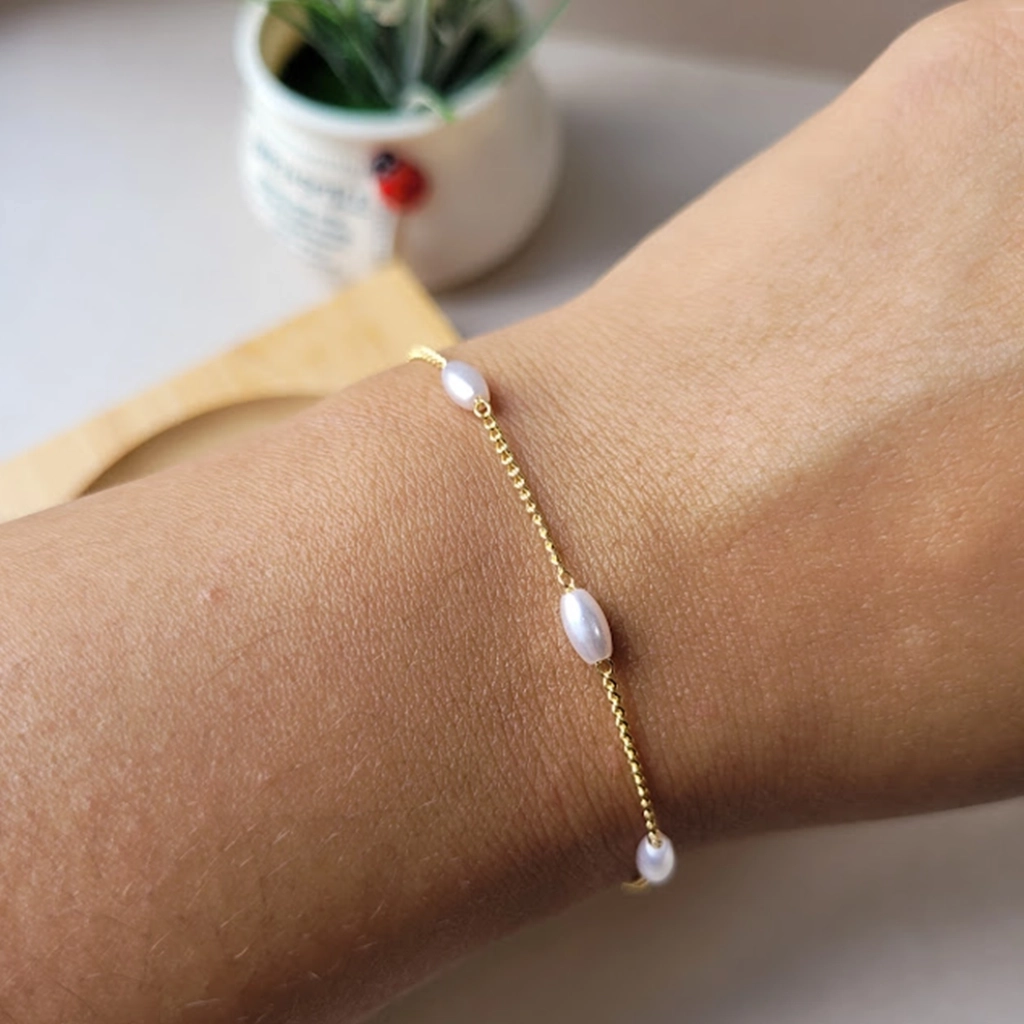 Pulseira Corrente Pérola Oval – Banhado a Ouro 18K