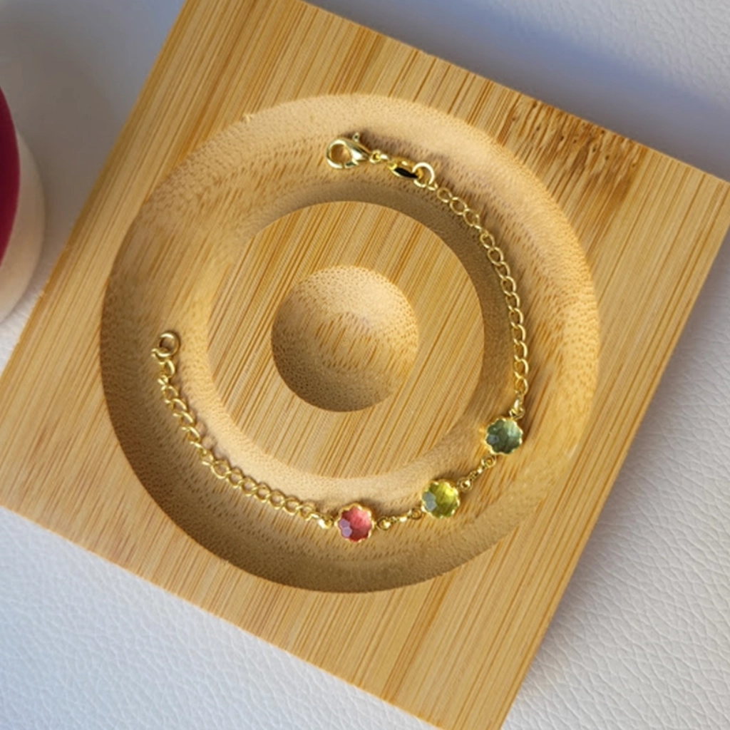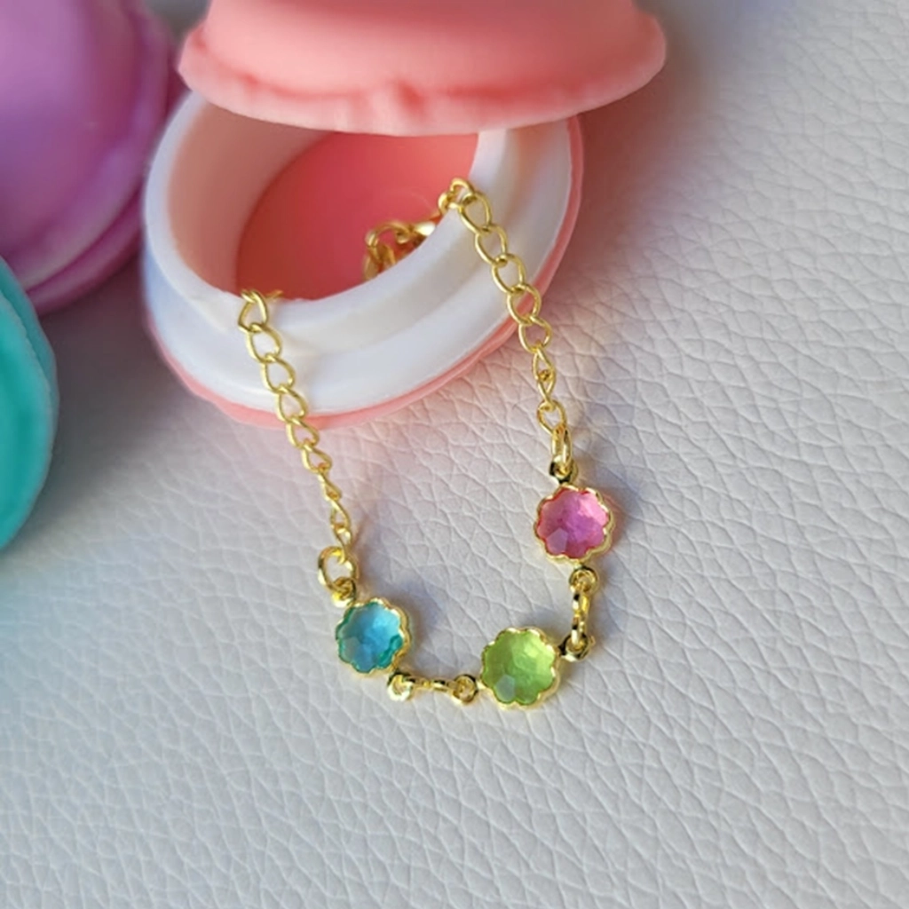 Pulseira Infantil Flor Colorida – Banhado a Ouro 18K