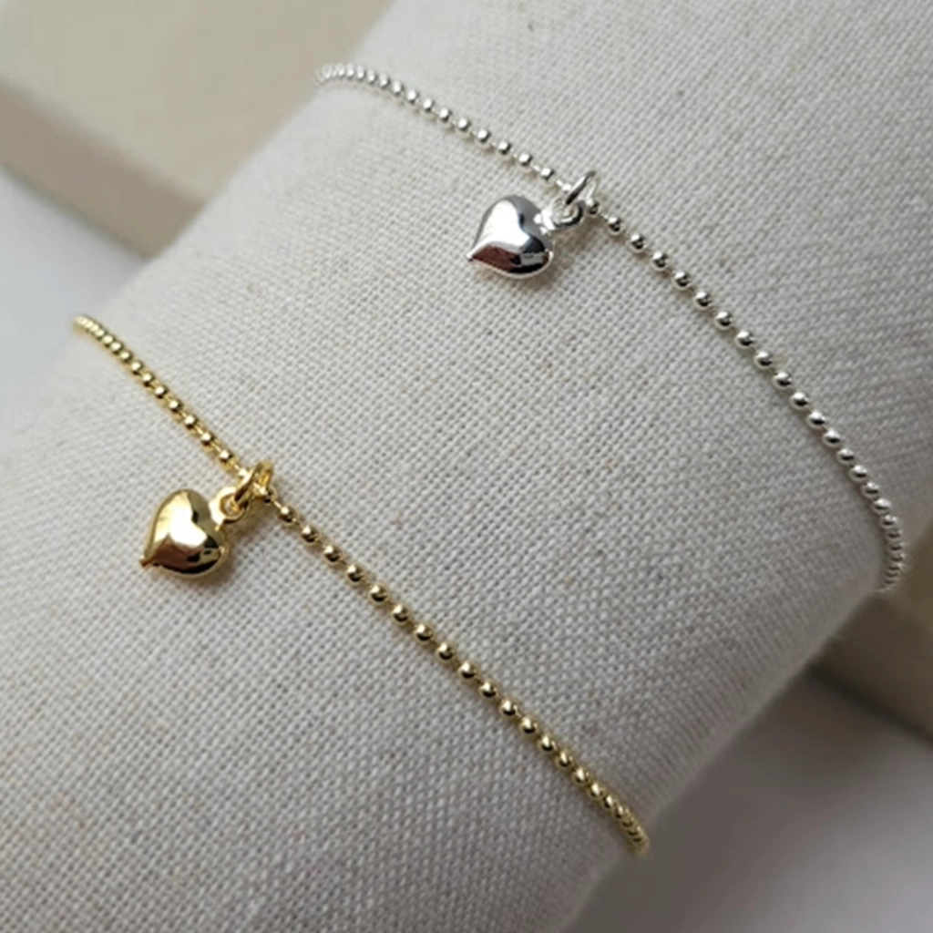 Pulseira Micro Bolinha com Coração – Banhado a Ouro 18K