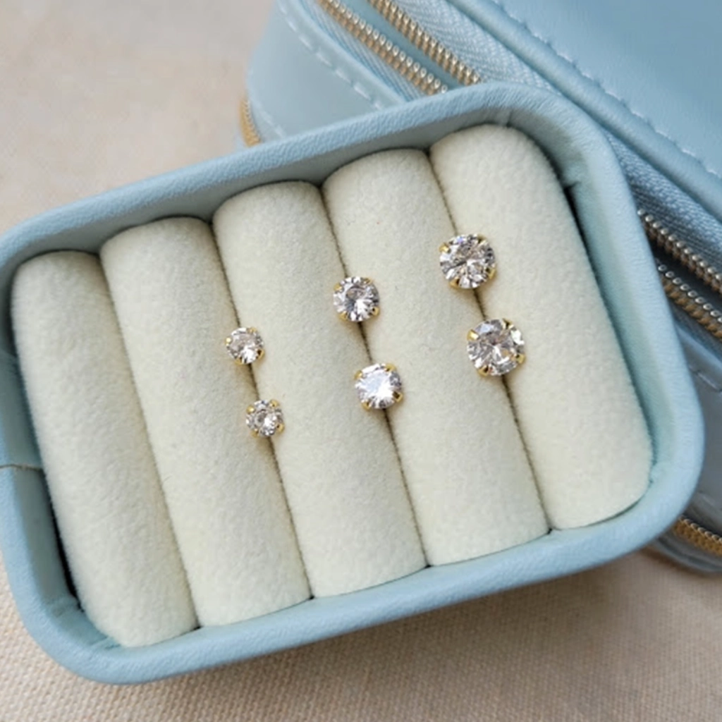 Trio de Brincos Círculo Cristal – Banhado a Ouro 18K