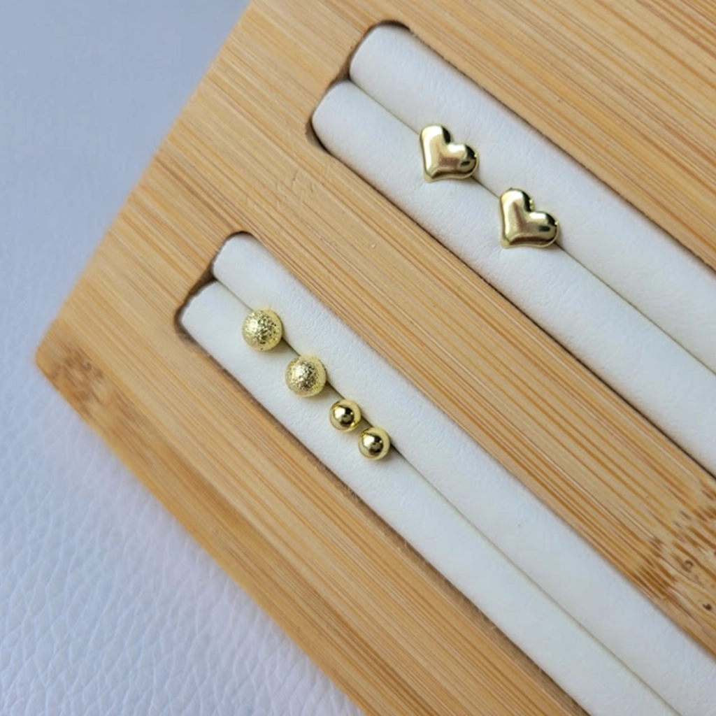 Trio de Brincos Coração, Bolinha Lisa e Bolinha Craquelada