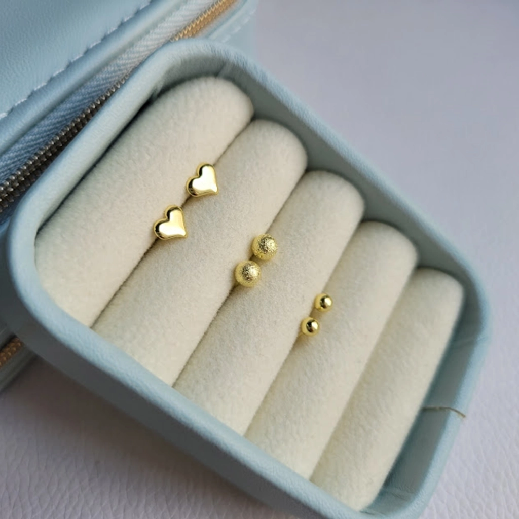 Trio de Brincos Coração, Bolinha Lisa e Bolinha Craquelada – Banhado a Ouro 18K